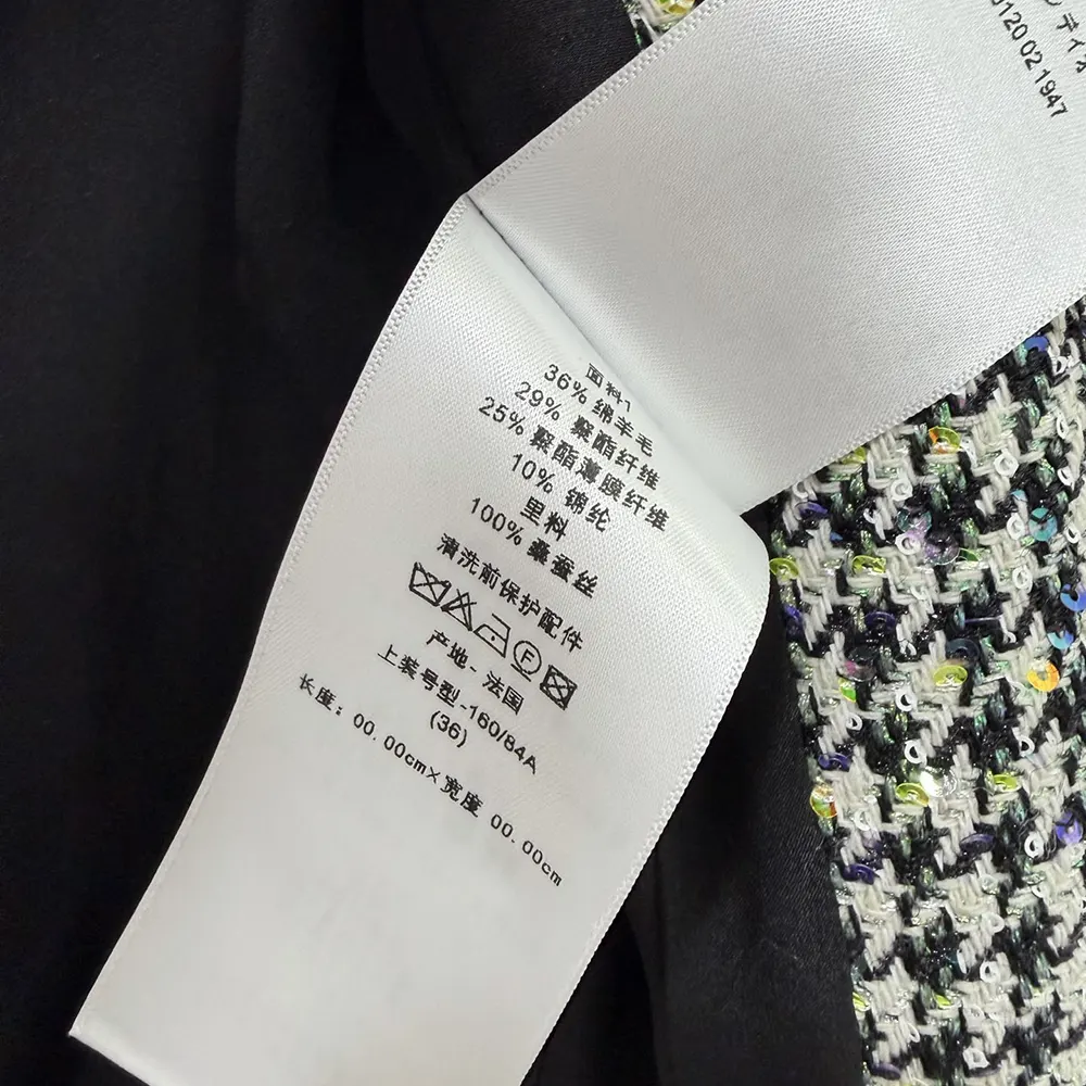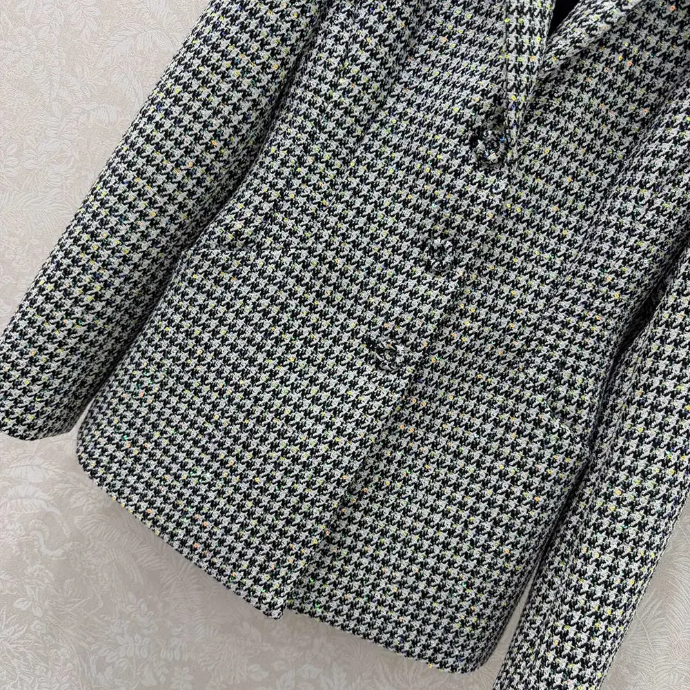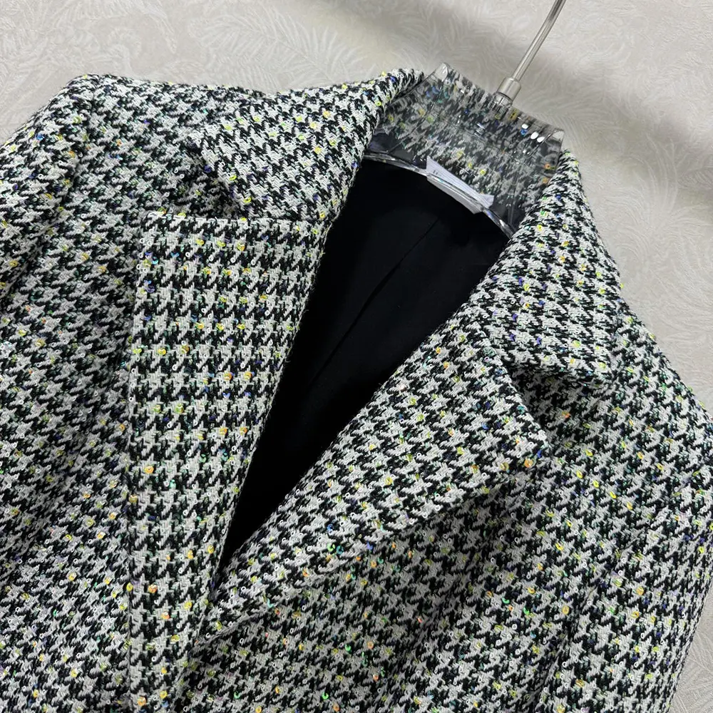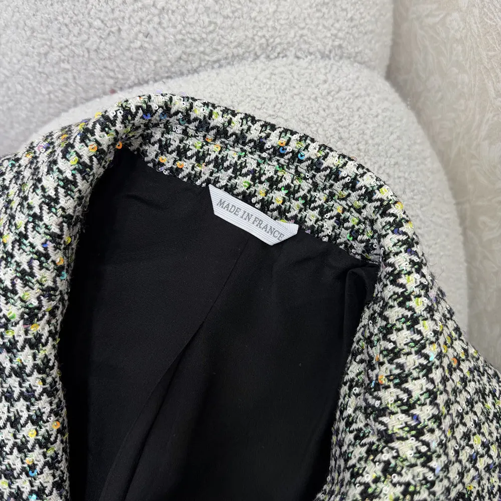 Specification: Dior Women Bar Jacket Black and White Houndstooth Virgin Wool Blend with Multicolor Sequins
