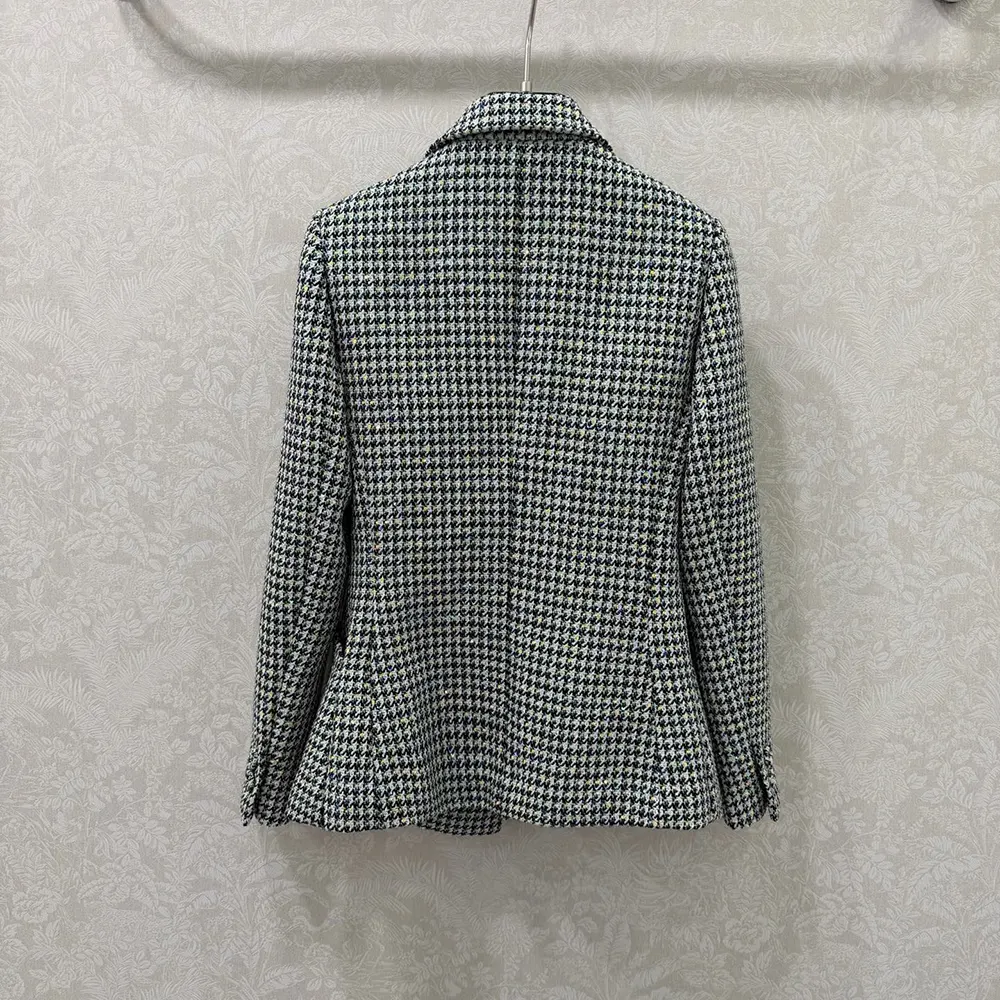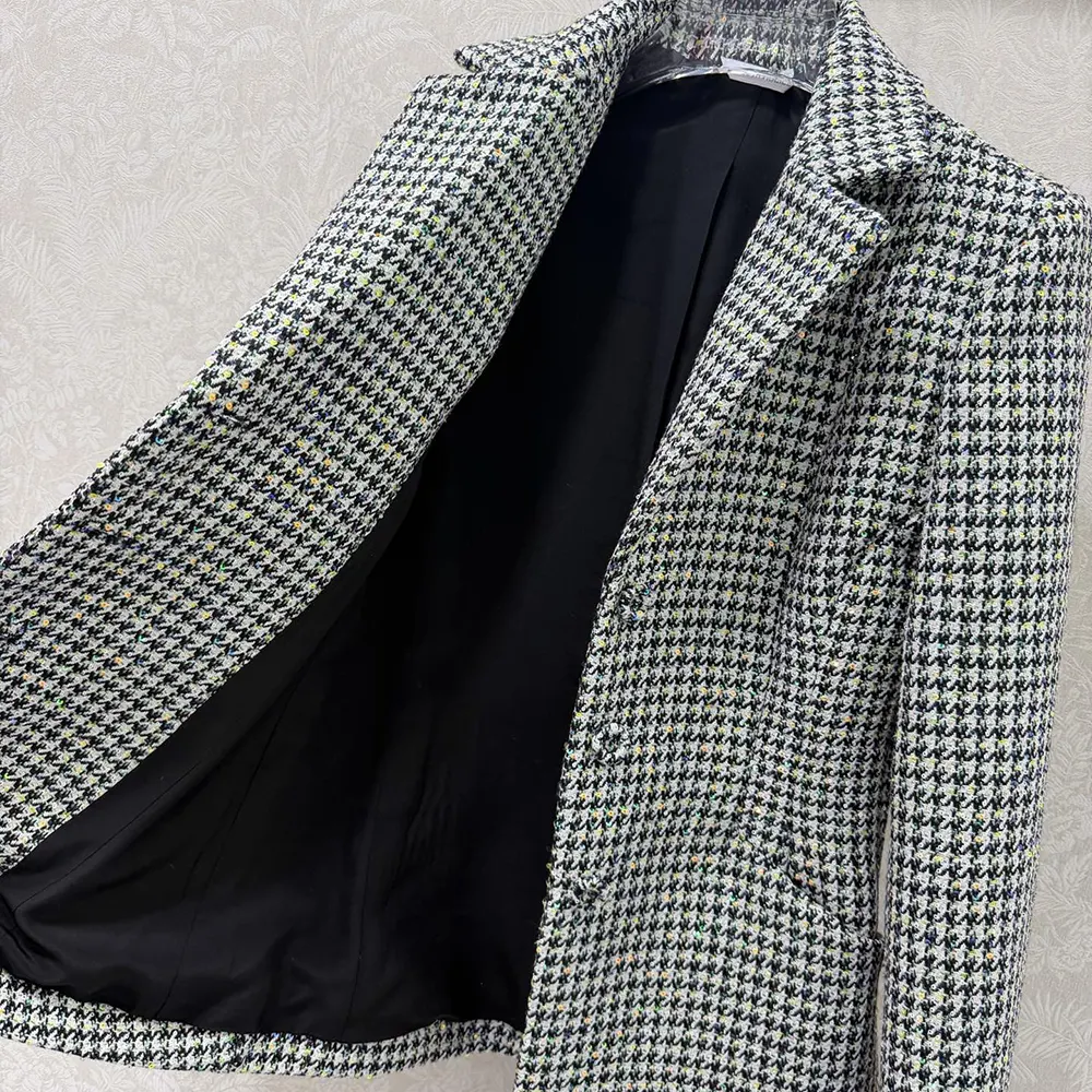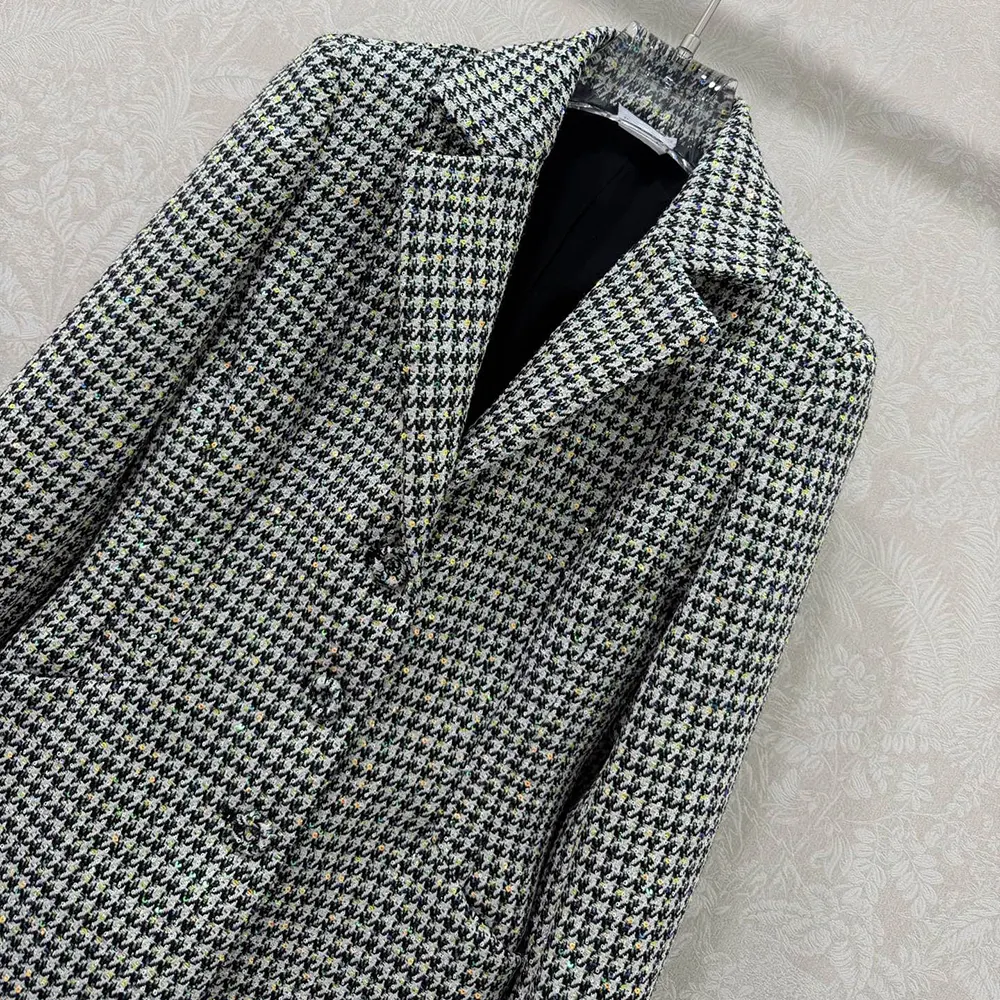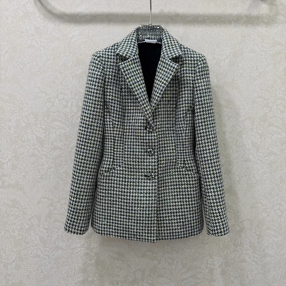 Specification: Dior Women Bar Jacket Black and White Houndstooth Virgin Wool Blend with Multicolor Sequins