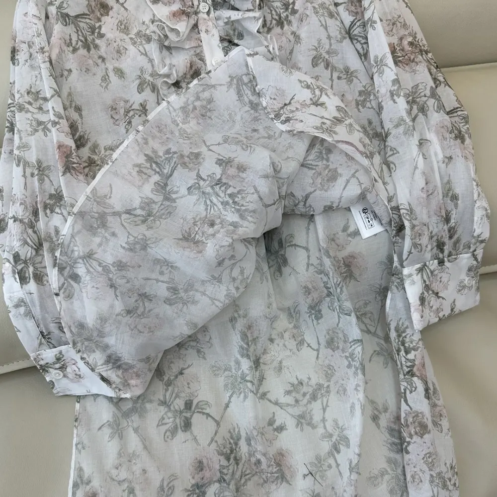 Specification: Dior Women Blouse White Cotton Muslin with Multicolor Rosier de Dior Motif
