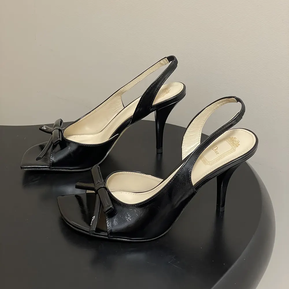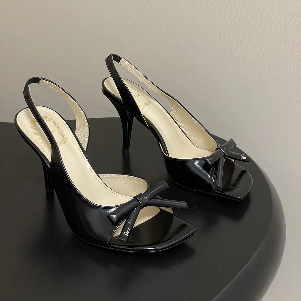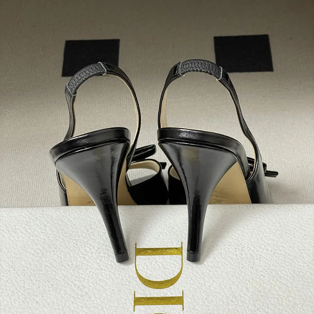 Dior Women Bow Heeled Slingback Sandal Black Lambskin KCO632LAB