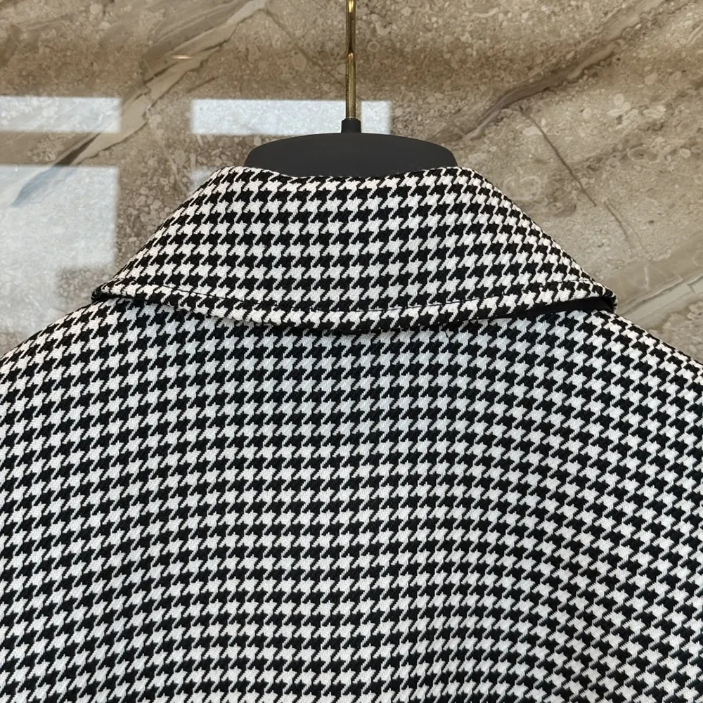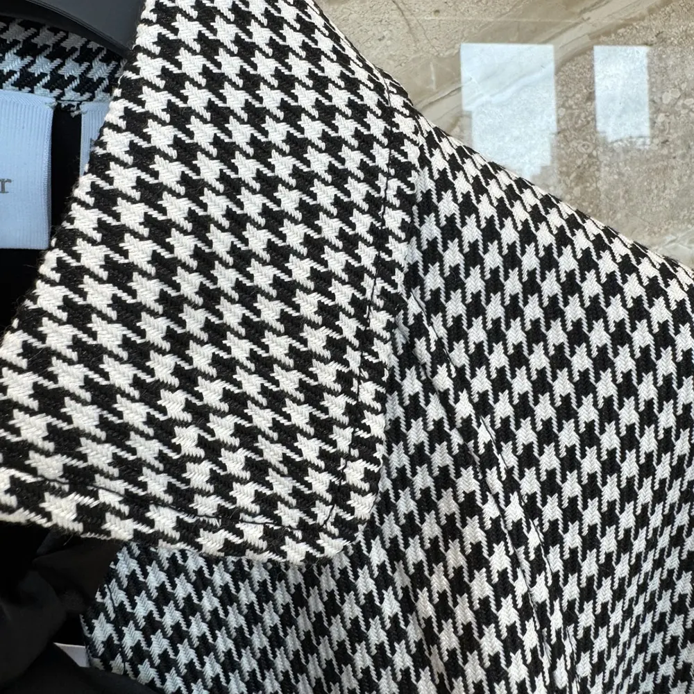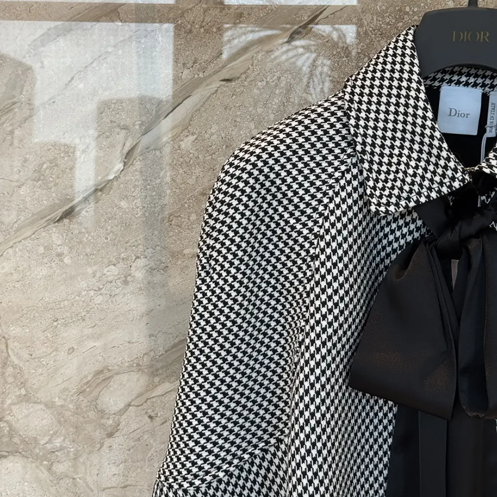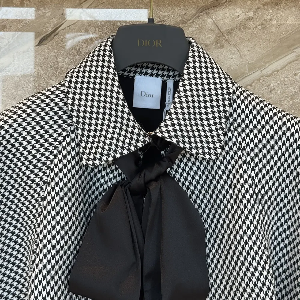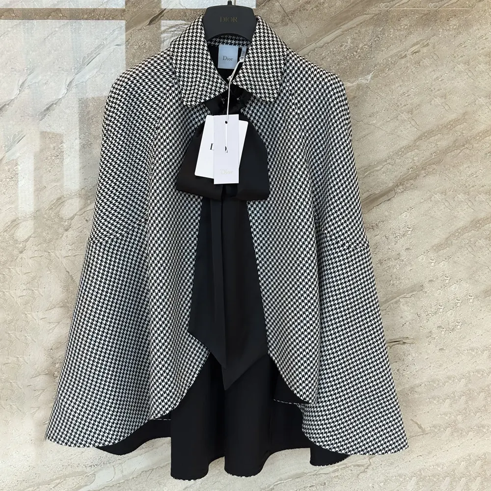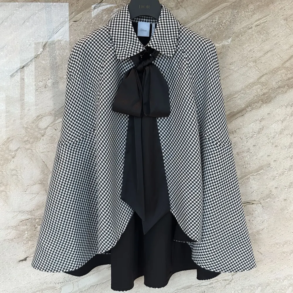 Specification: Dior Women Cape with Tied Neckline Black and White Houndstooth Silk-Virgin-Wool Blend