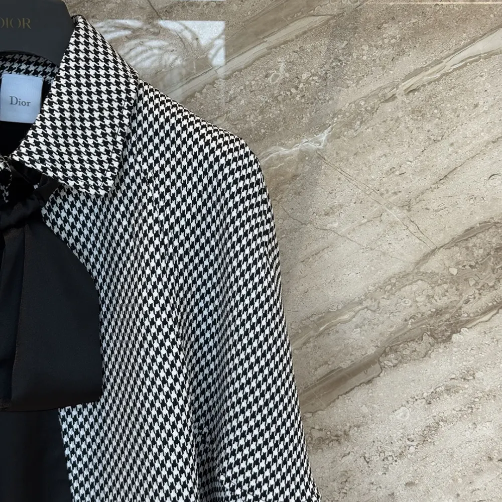 Be the first to review “Dior Women Cape with Tied Neckline Black and White Houndstooth Silk-Virgin-Wool Blend”