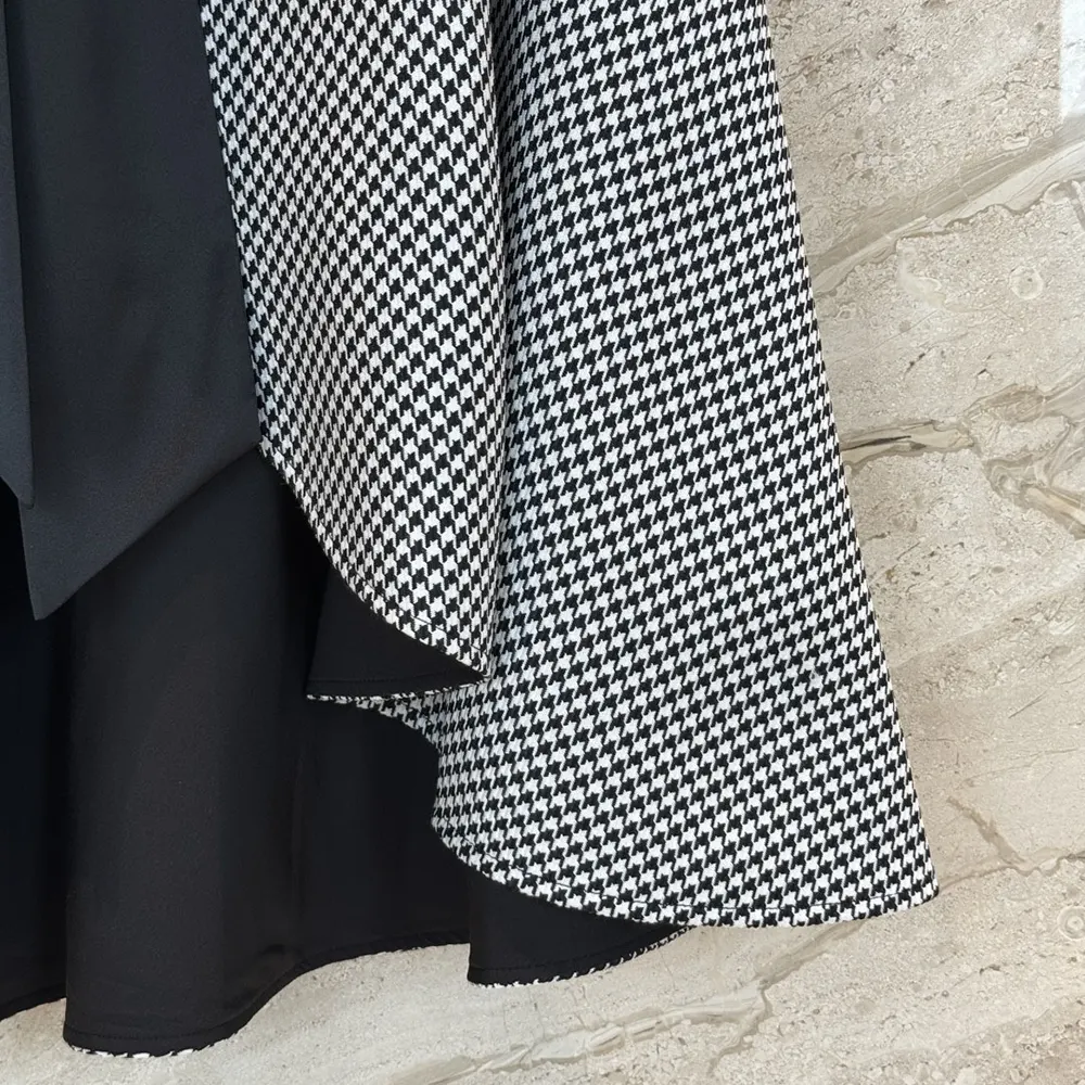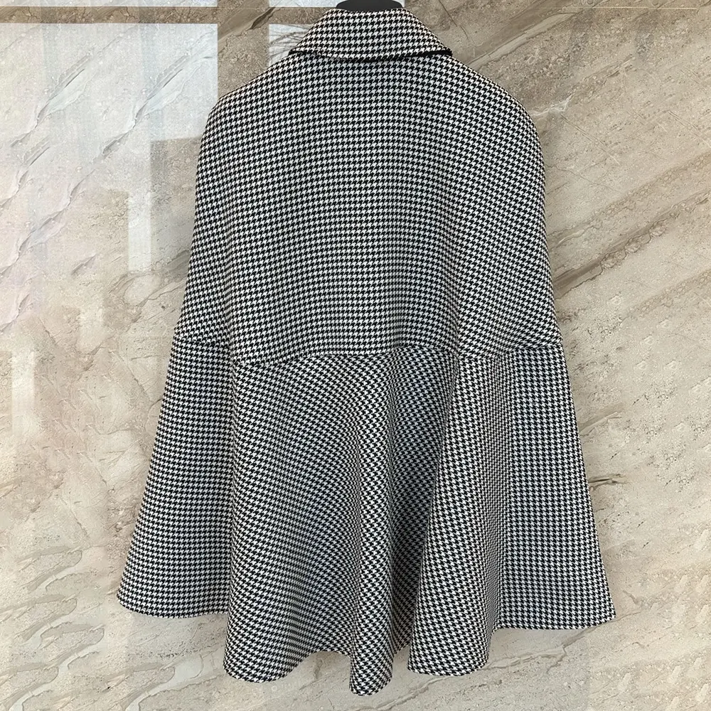 Dior Women Cape with Tied Neckline Black and White Houndstooth Silk-Virgin-Wool Blend