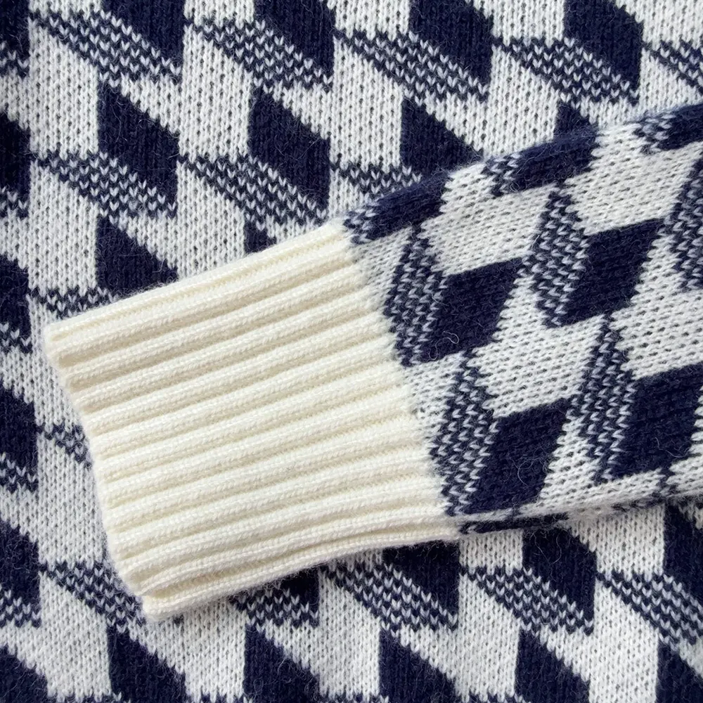 Be the first to review “Dior Women Cropped Sweater Navy Blue and White Houndstooth Wool Knit”