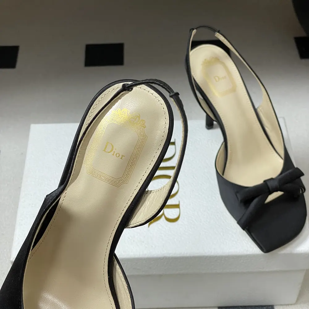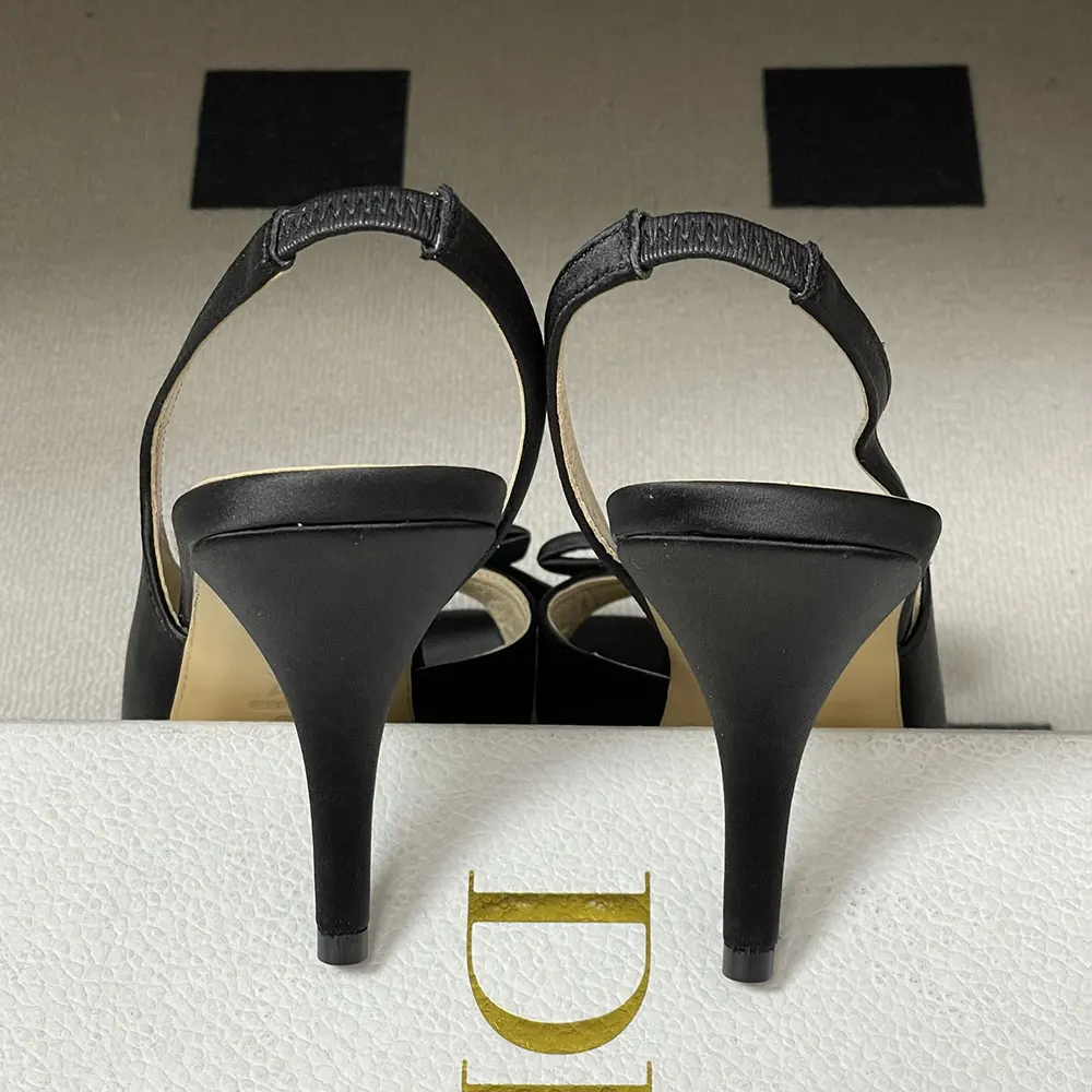 Specification: Dior Women Dior Bow Heeled Slingback Sandal Black Satin KCO579SAT