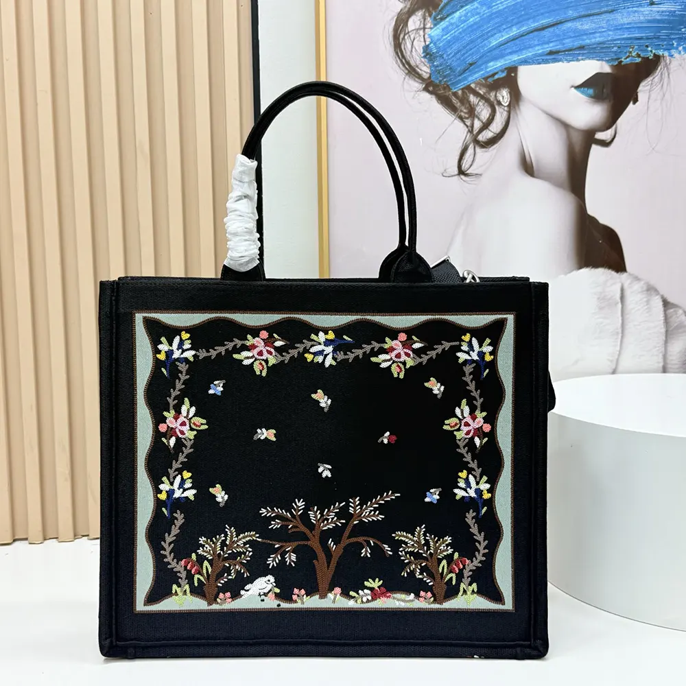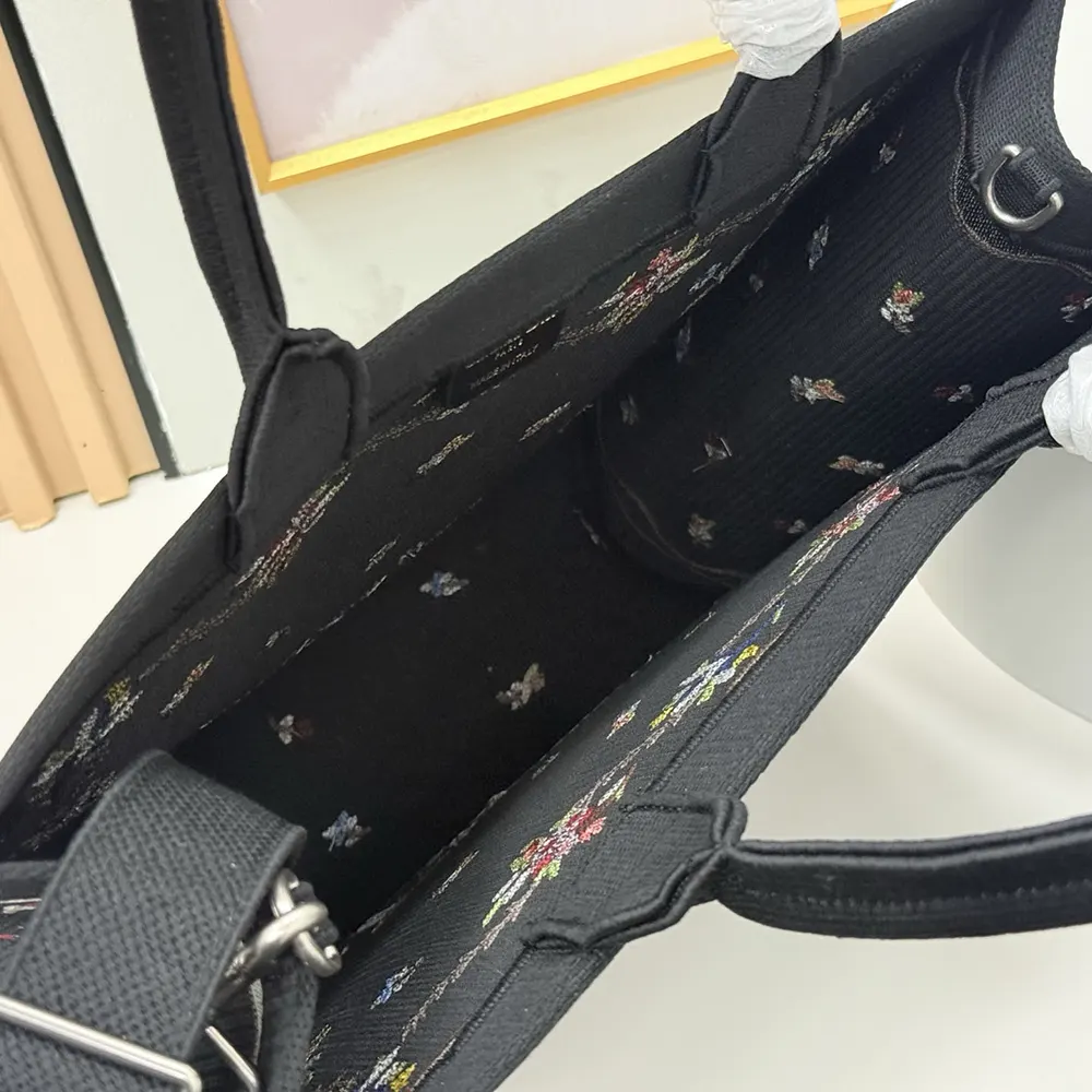 Specification: Dior Women Dioramour Medium Dior Book Tote with Strap Black Multicolor Revolution Flowers Embroidery
