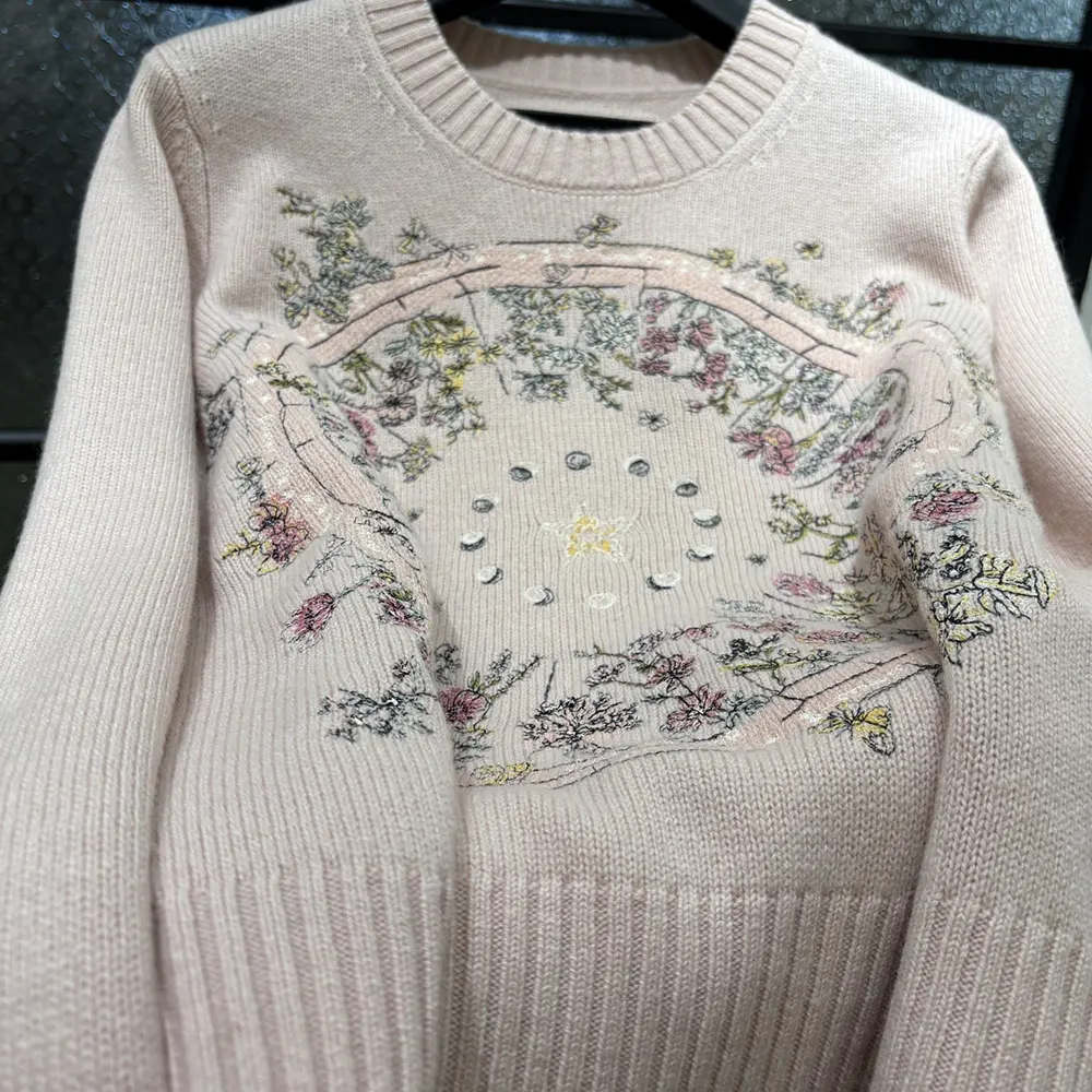 Specification: Dior Women Embroidered Sweater Cashmere Knit with Pink Dior Astral Flowers Motif
