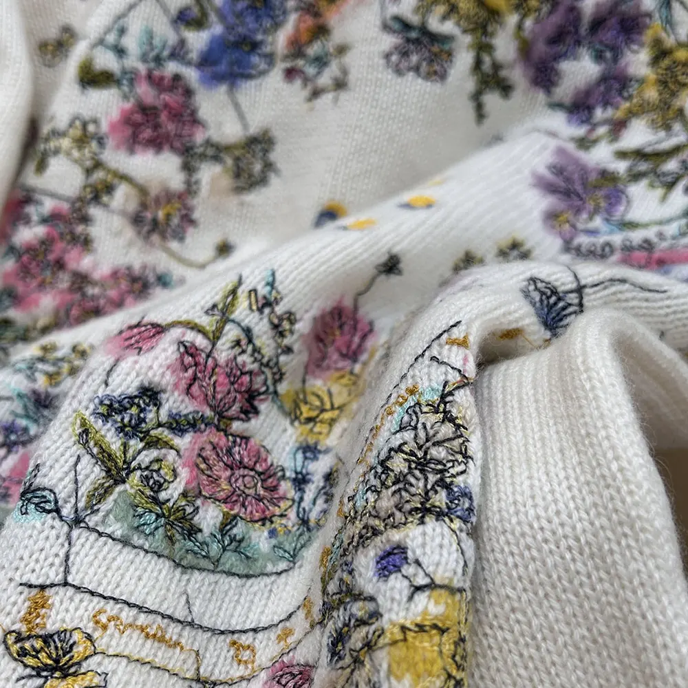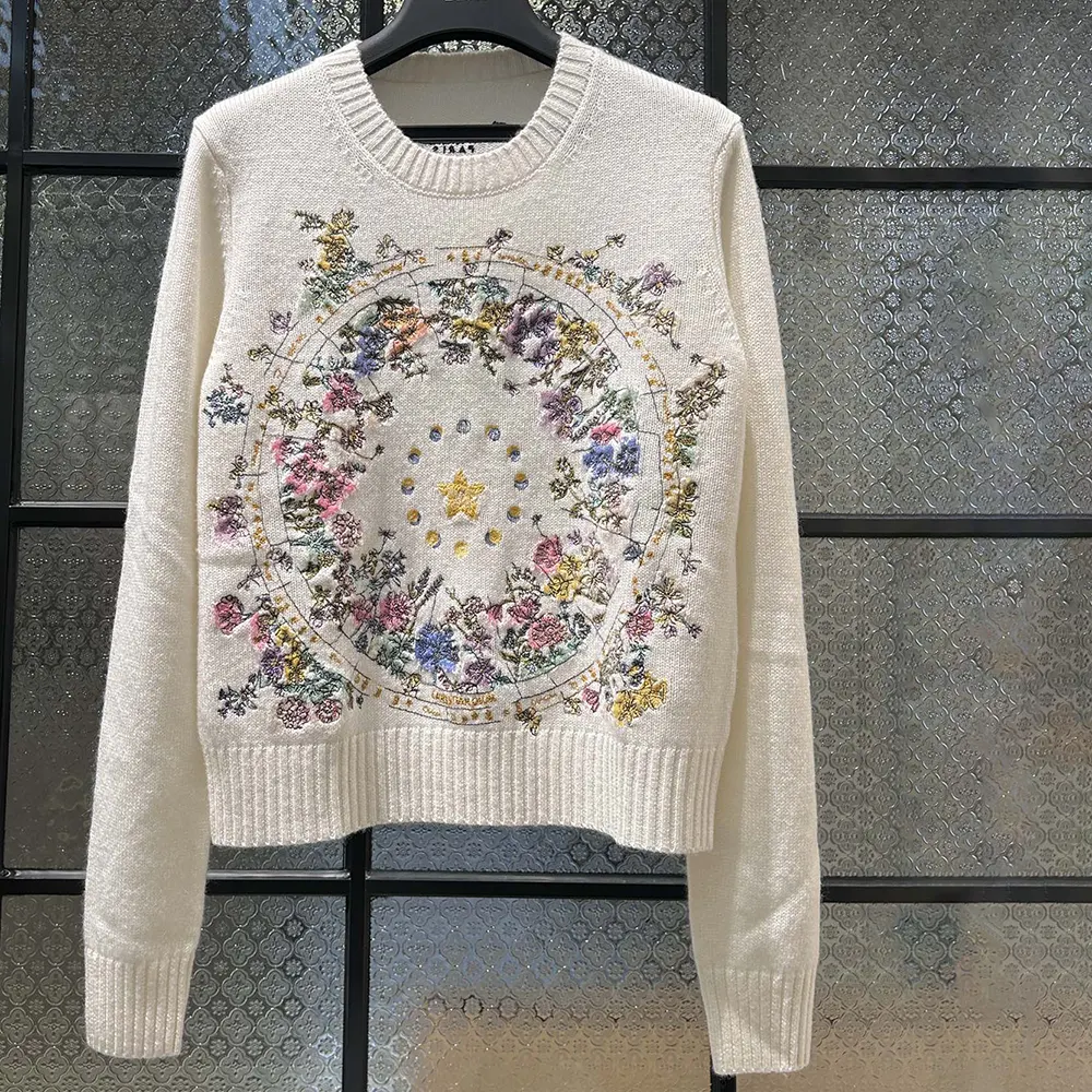 Specification: Dior Women Embroidered Sweater White Cashmere Knit with Multicolor Dior Astral Flowers Motif