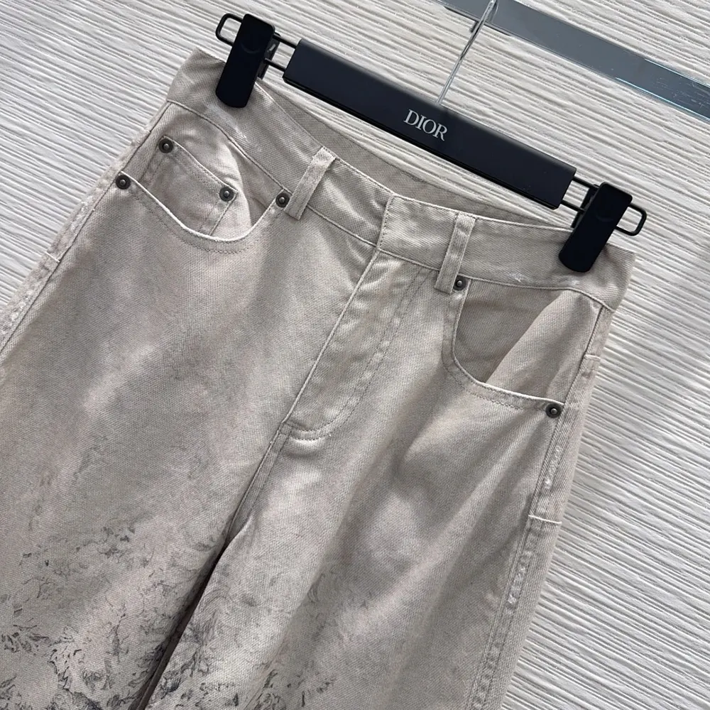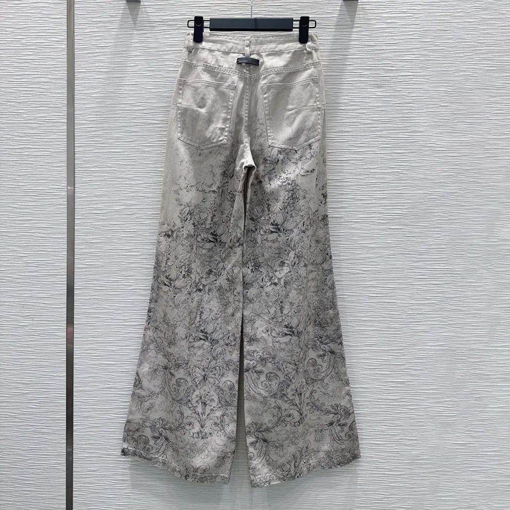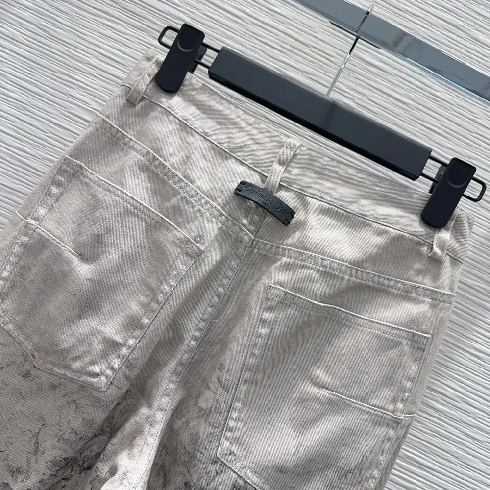 Specification: Dior Women Flared Jeans Beige Dior Barocco Cotton-Linen Denim 612P24A3191