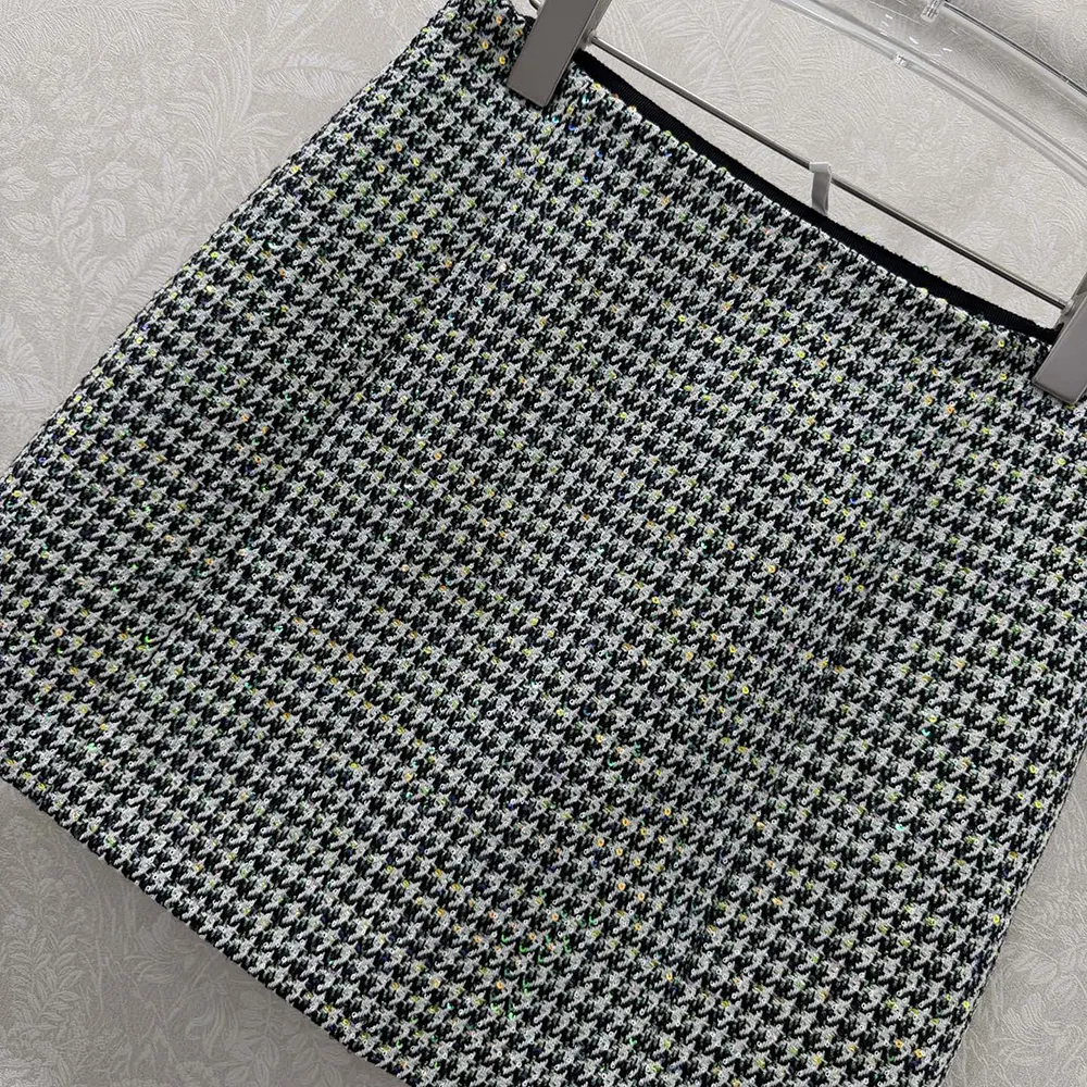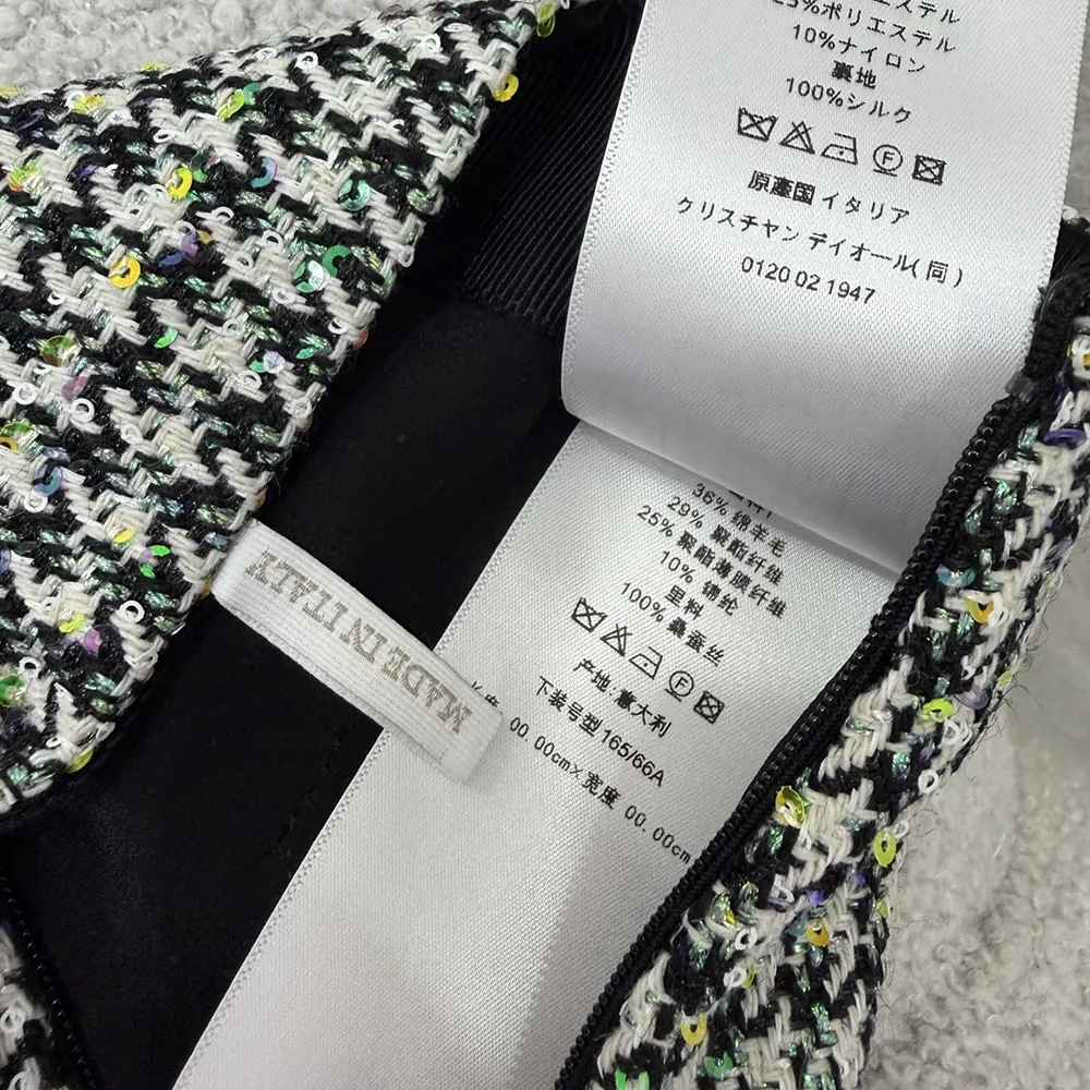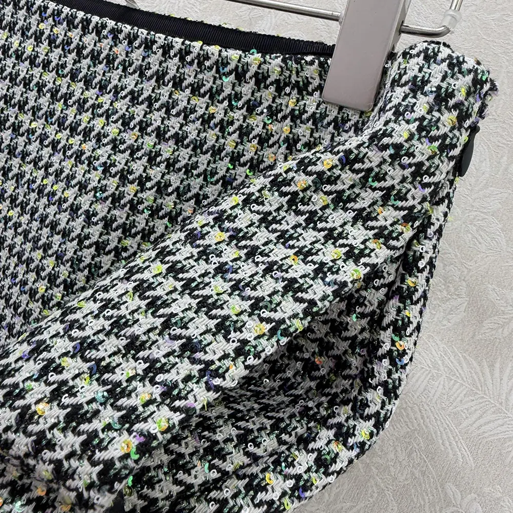 Specification: Dior Women Flared Miniskirt Black and White Houndstooth Virgin Wool Blend with Multicolor Sequins
