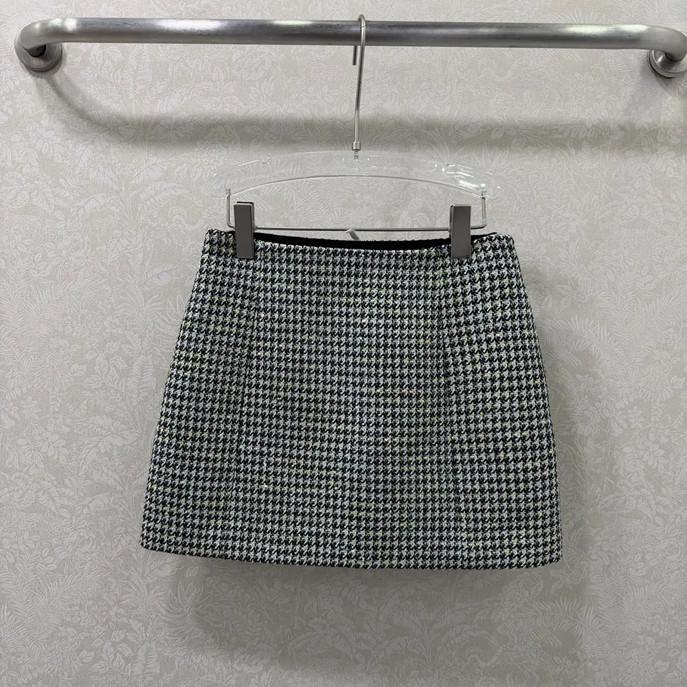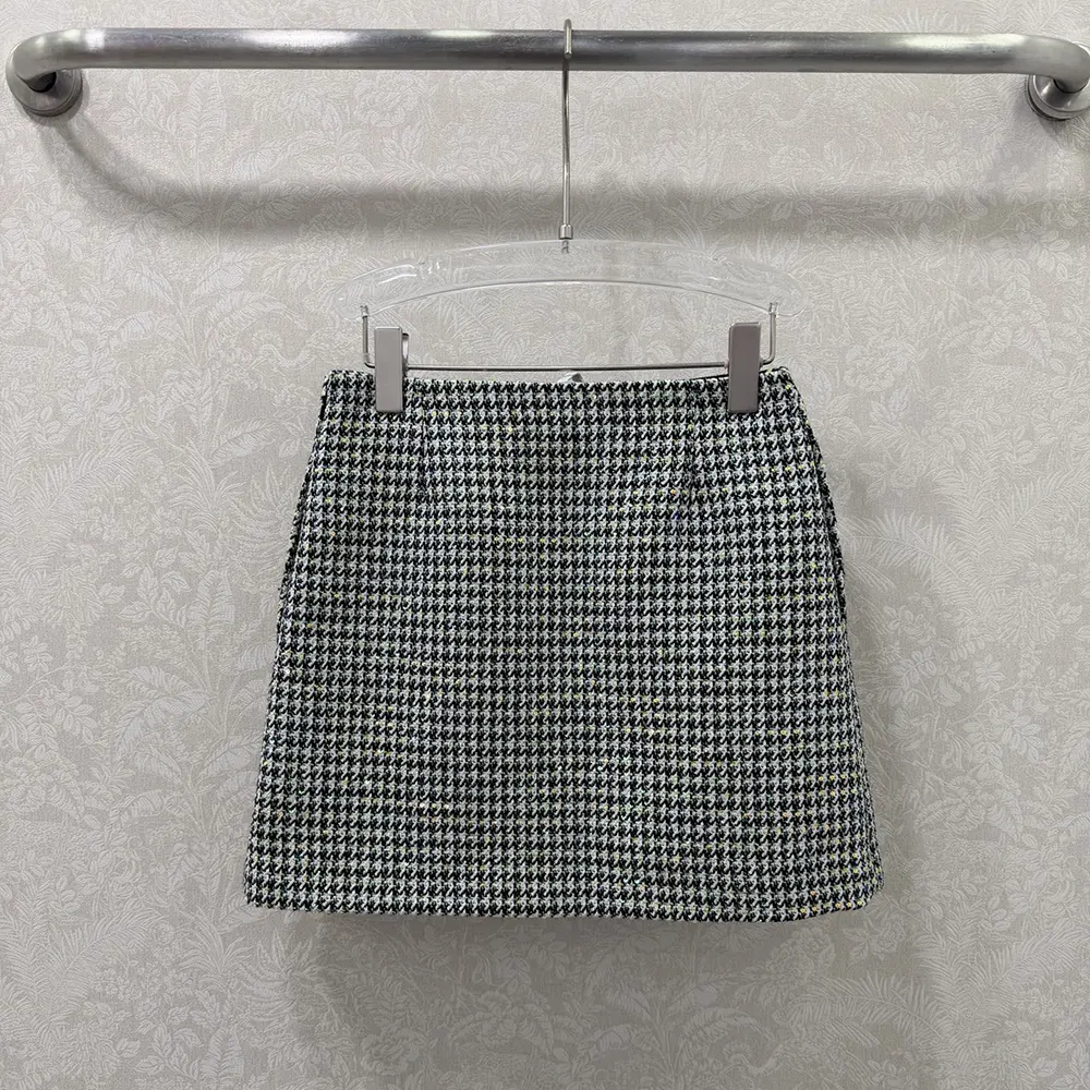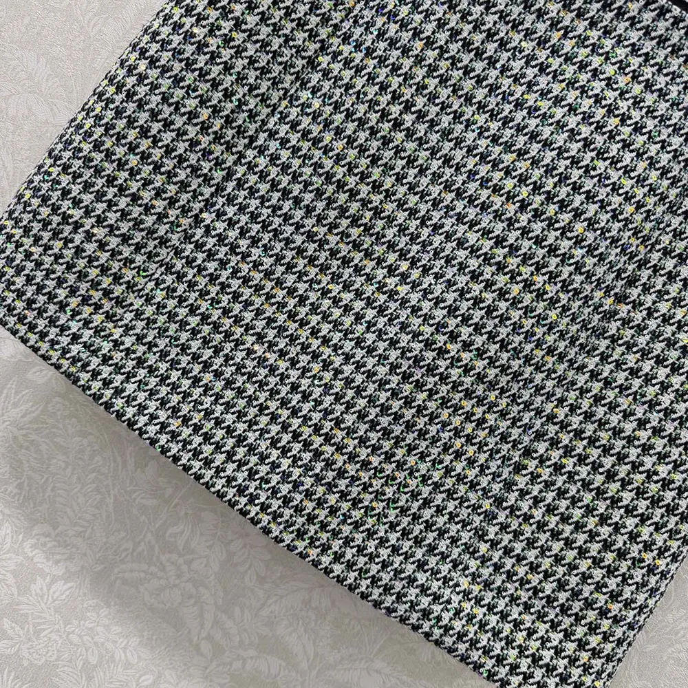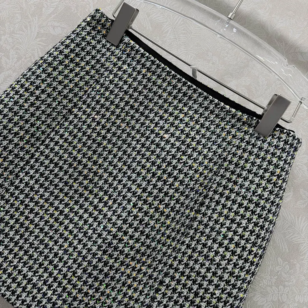 Specification: Dior Women Flared Miniskirt Black and White Houndstooth Virgin Wool Blend with Multicolor Sequins