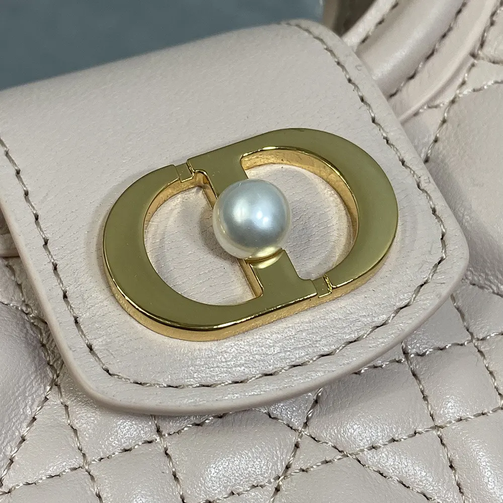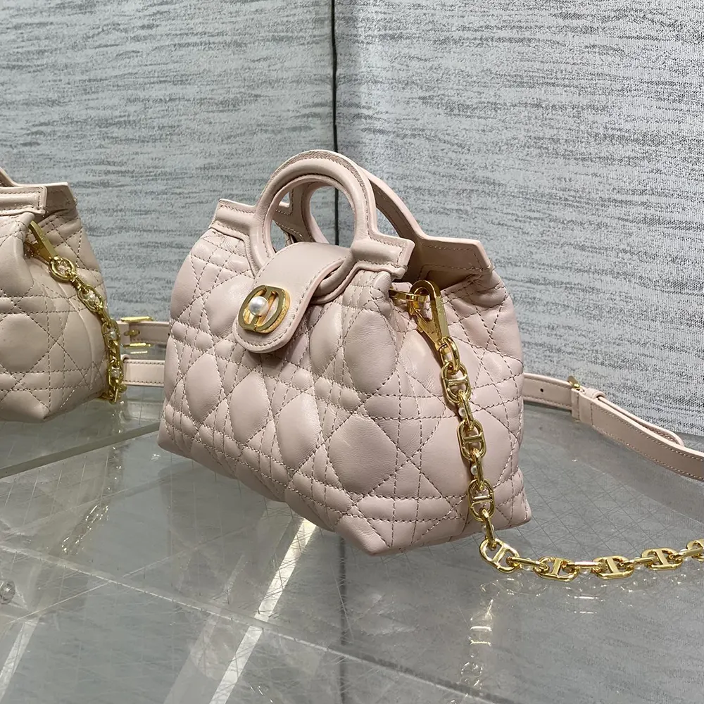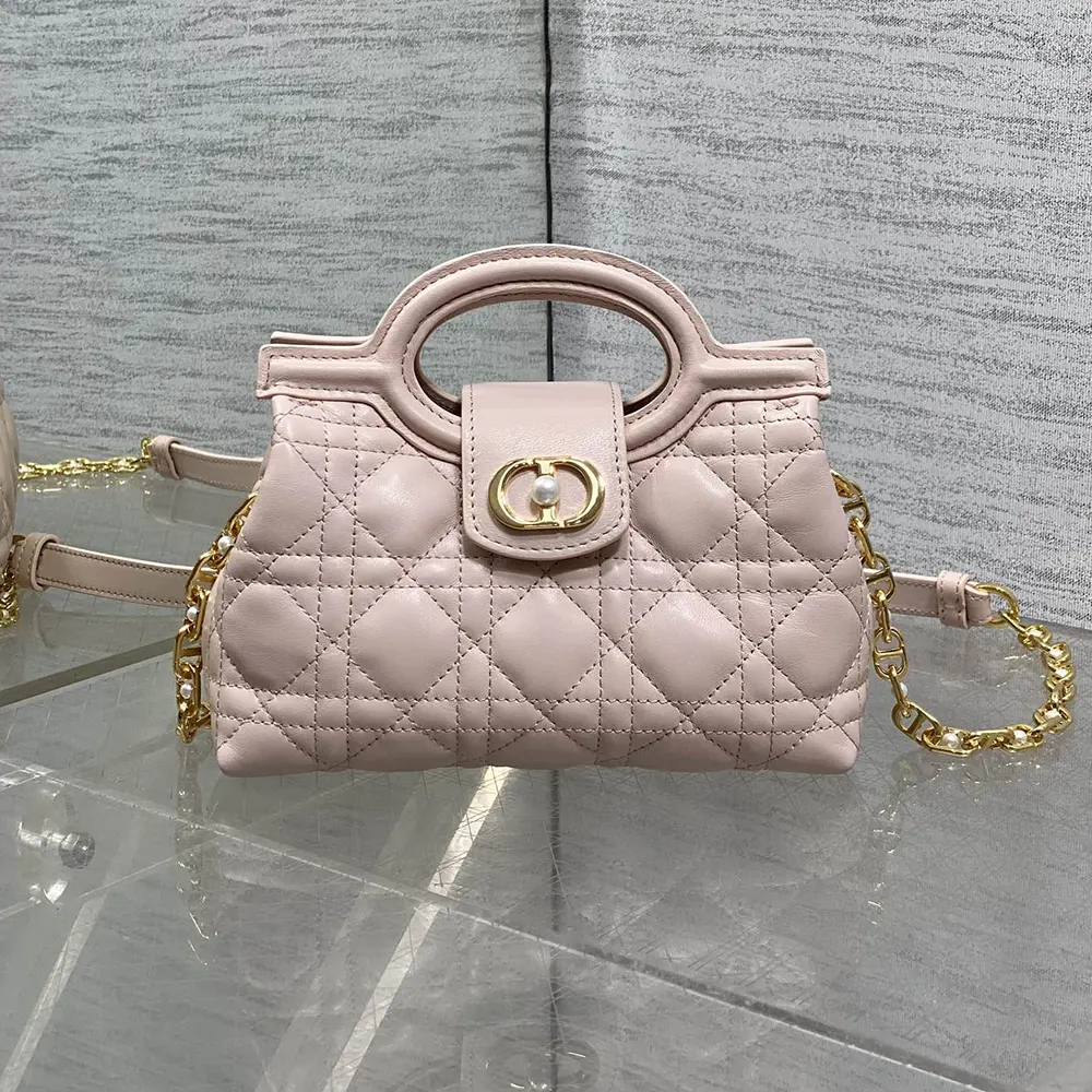 Dior Women Jolie Top Handle Mini Bag Powder Pink Cannage Lambskin