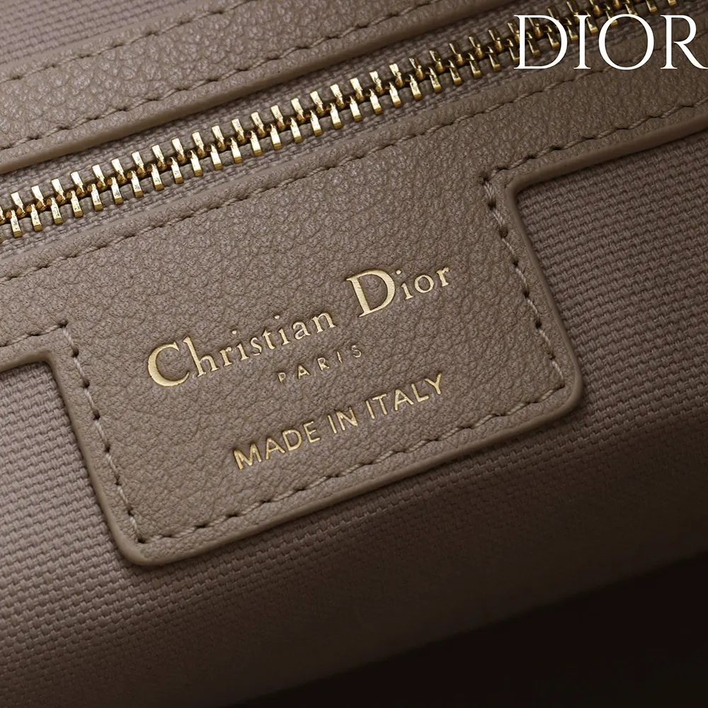- The supple construction is enhanced by gold-finish metal D.I.O.R. charms and finely crafted leather accents for added structure,