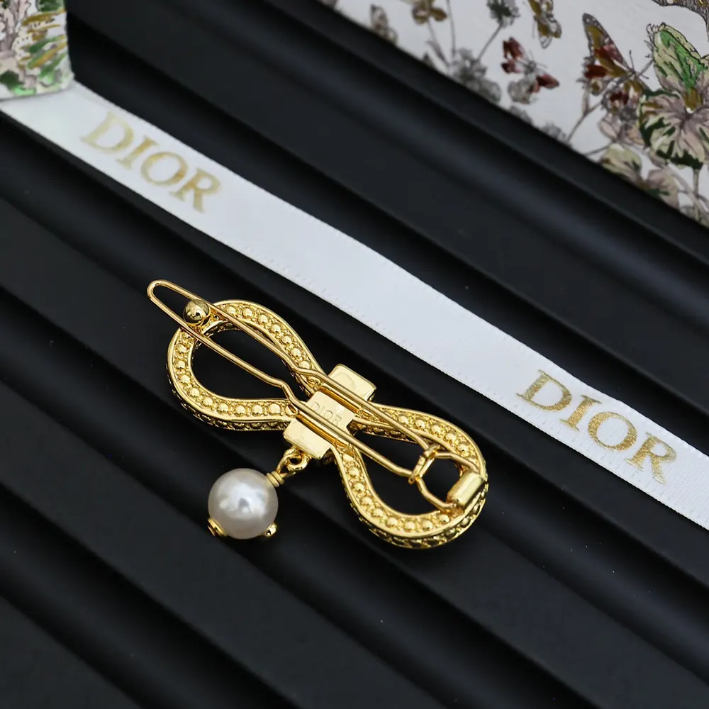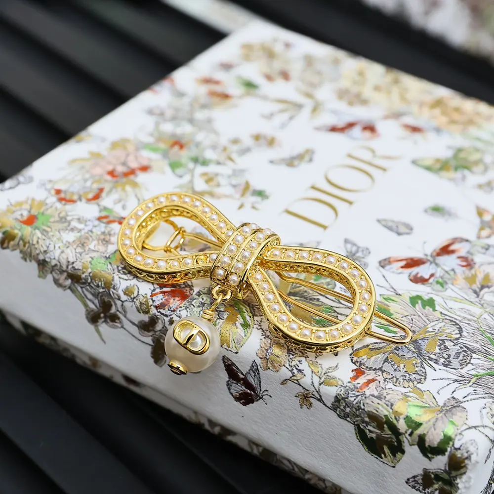 Dior Women Le Nœud de Dior Barrette Champagne-Finish Metal with a White Resin Pearl