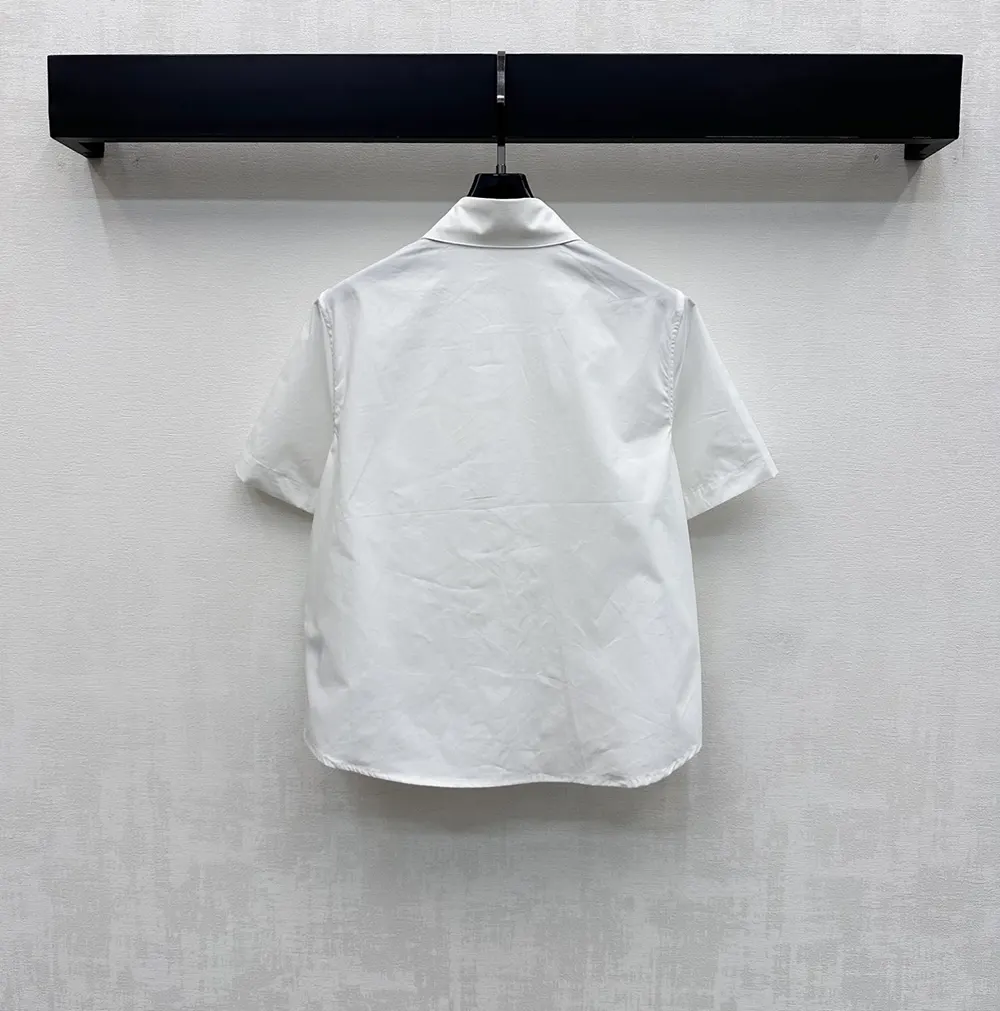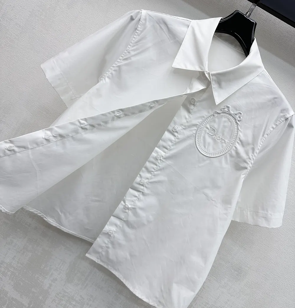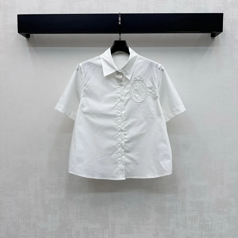 Dior Women Médaillon Embroidered Short-Sleeved Blouse White Cotton Poplin