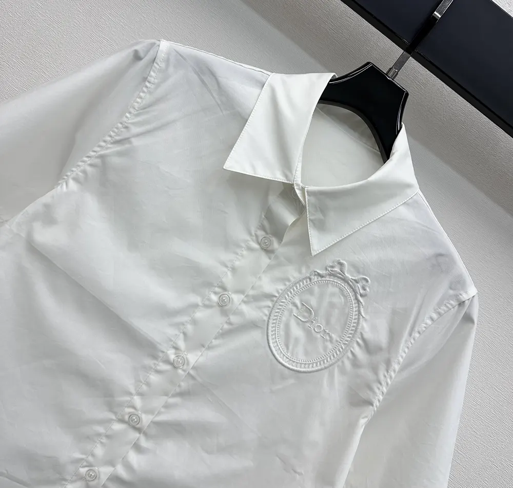 Specification: Dior Women Médaillon Embroidered Short-Sleeved Blouse White Cotton Poplin