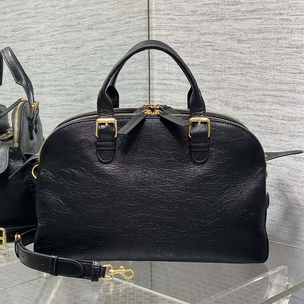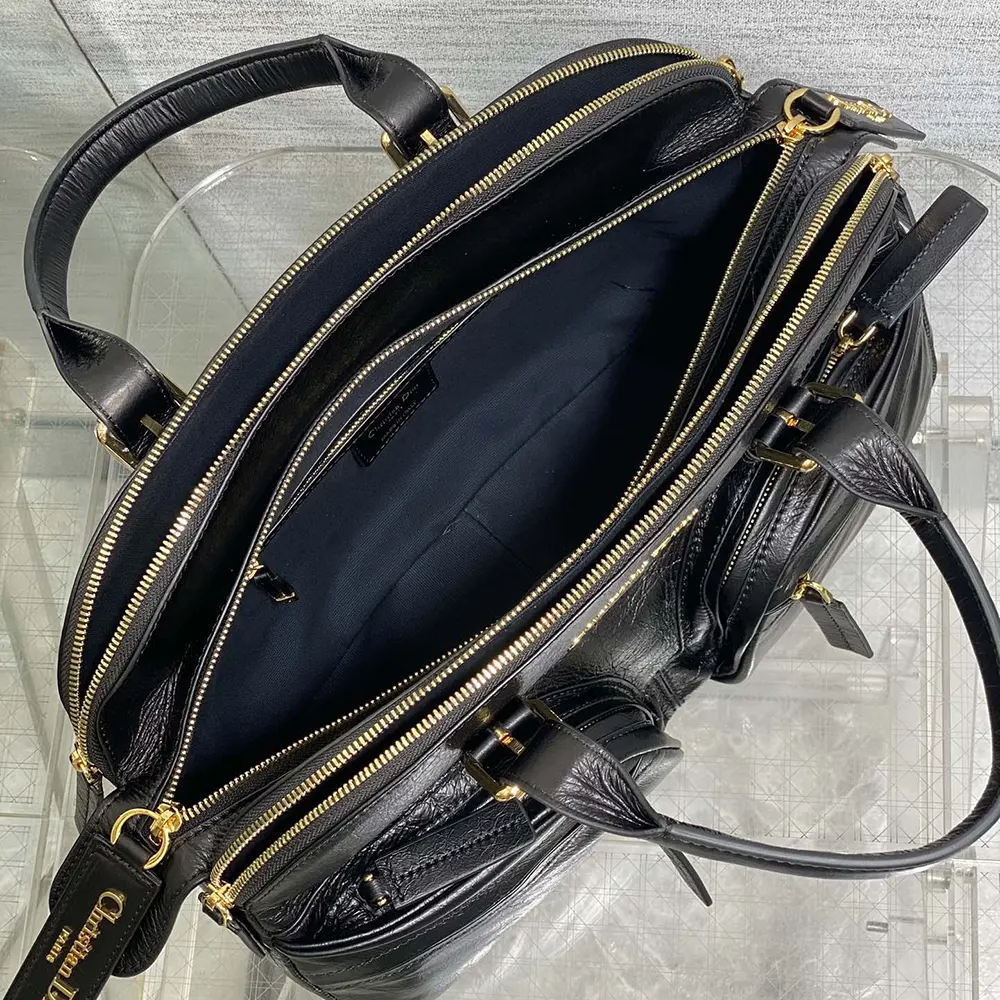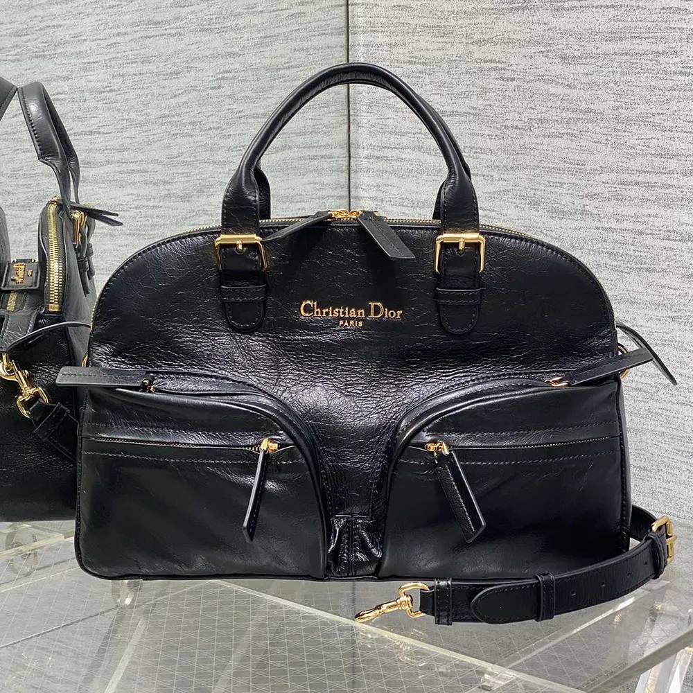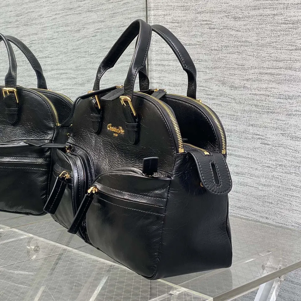 Specification: Dior Women Medium Grand Tour Bowling Bag Black Crinkled Calfskin