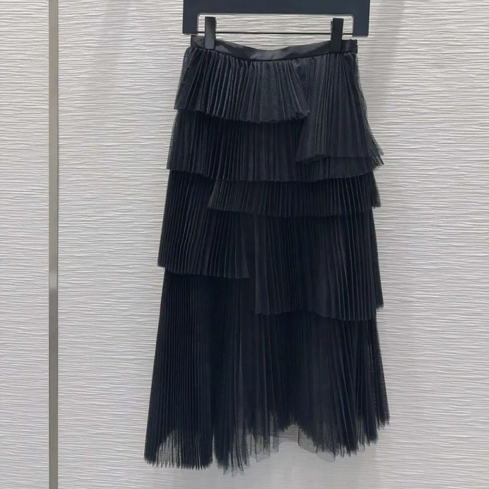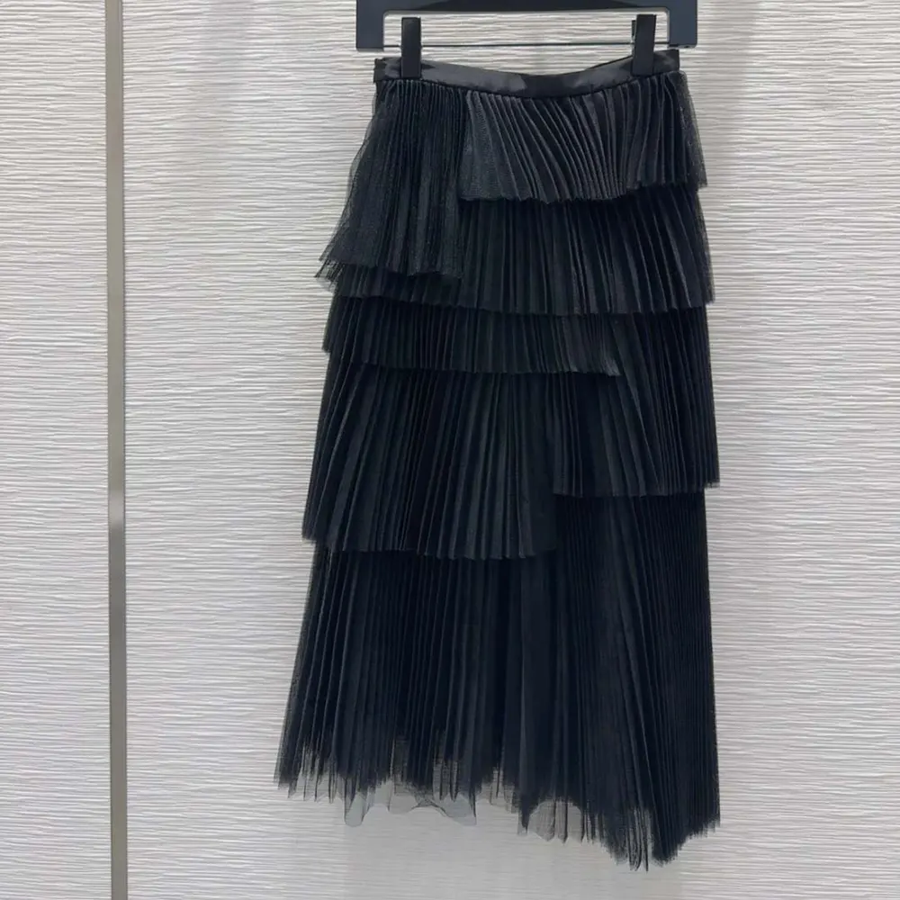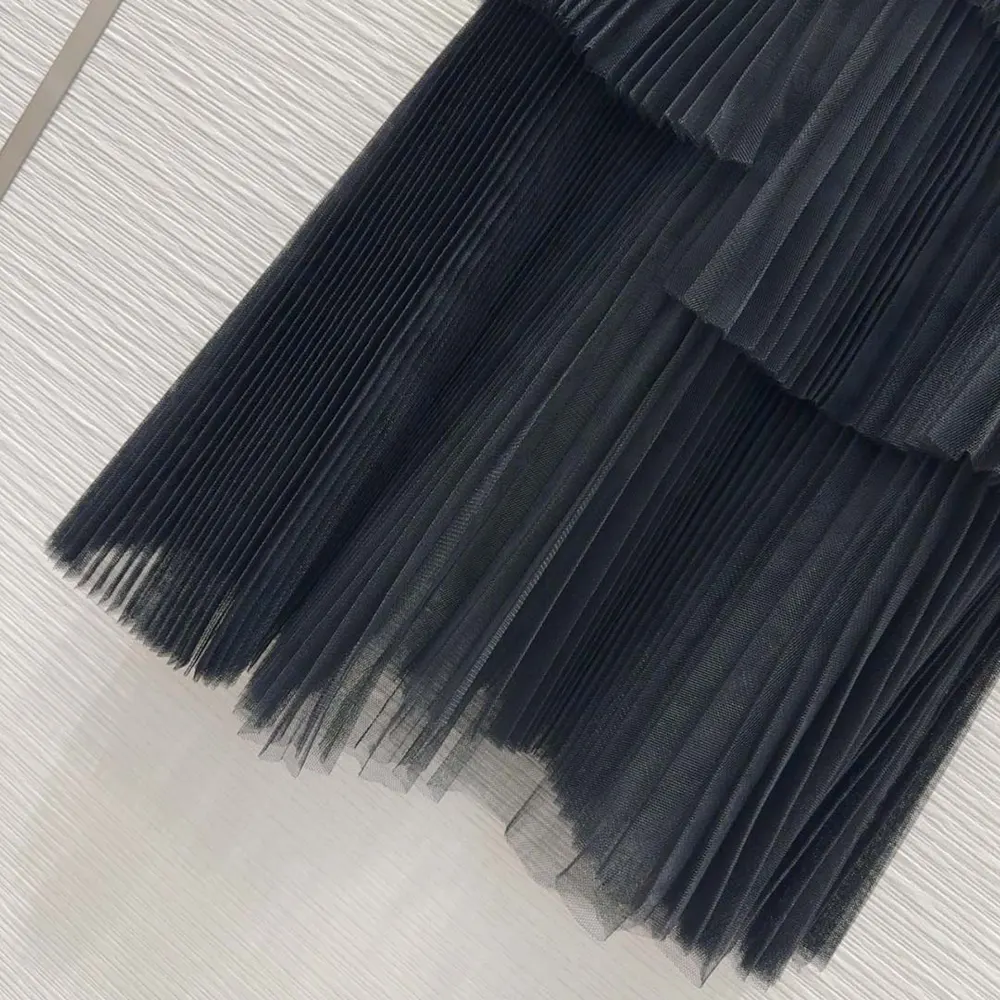 Specification: Dior Women Mid-Length Asymmetric Pleated Skirt Black Tulle