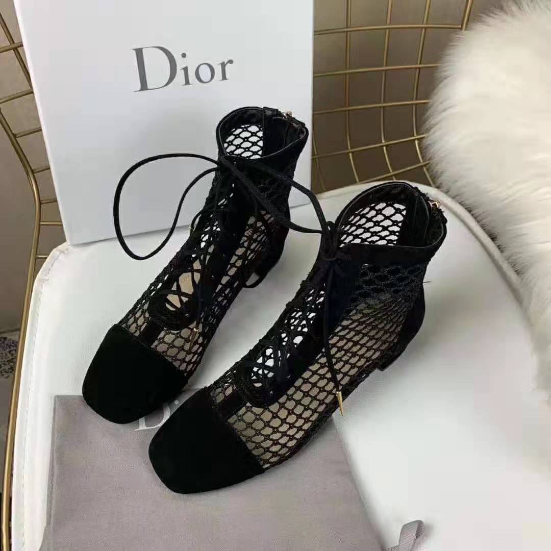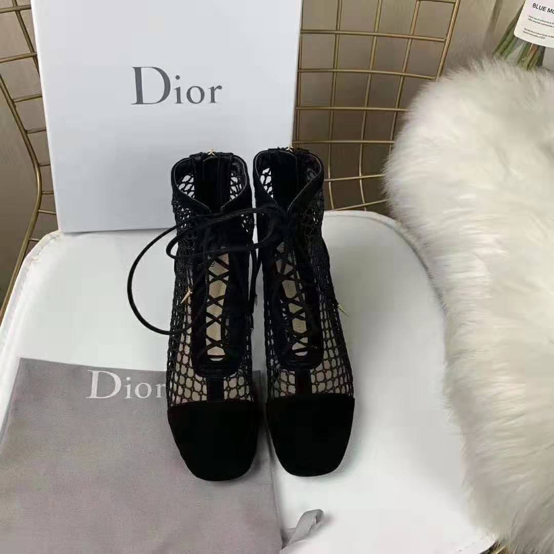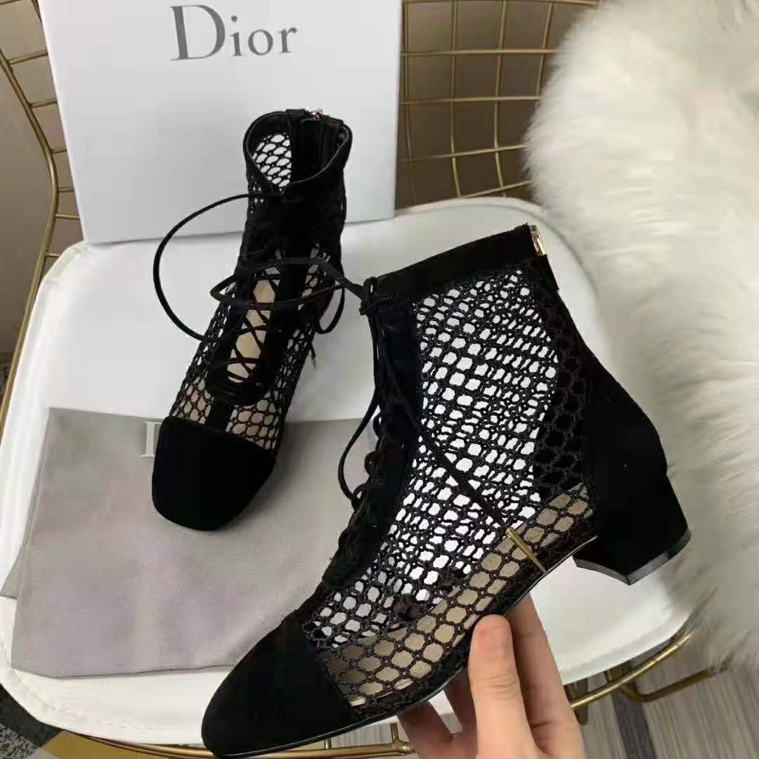 Dior Women Naughtily-D Mesh Ankle Boot in Suede Calfskin 3cm Heel-Black