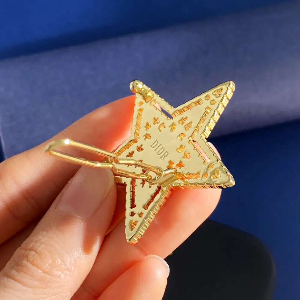 • Finely carved in pale gold-finish metal, it features a sparkling star, pavé-set with silver-tone crystals and embellished with the CD signature.