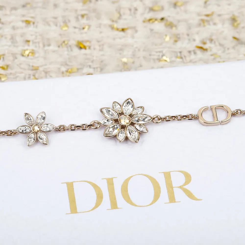 - Accented by the CD signature, the pale gold-finish metal chain features two flowers with silver-tone crystal petals and a gold-tone crystal at their center.