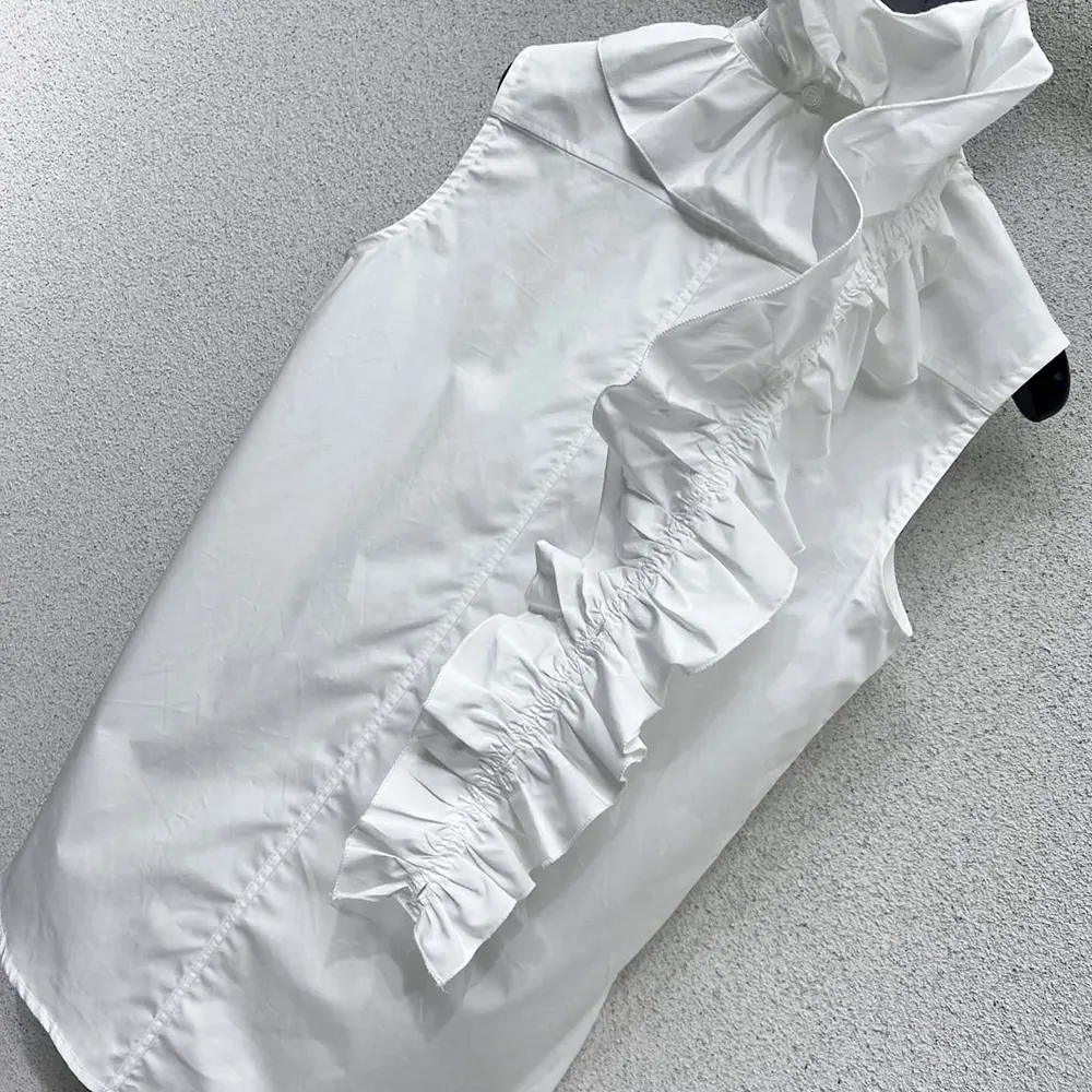 Specification: Dior Women Sleeveless Blouse with Removable Ruched Collar White Cotton Poplin