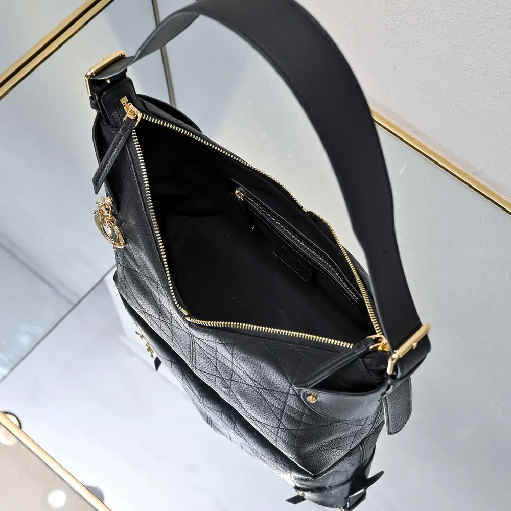 - The supple construction is enhanced by gold-finish metal D.I.O.R. charms and finely crafted leather accents for added structure,