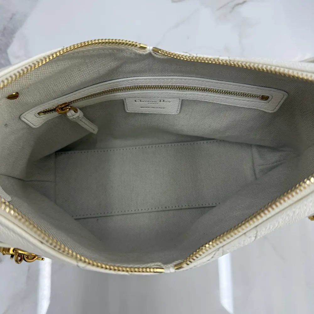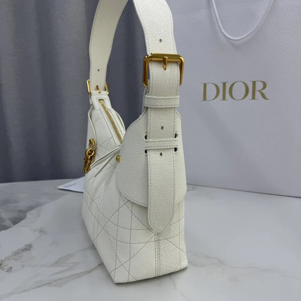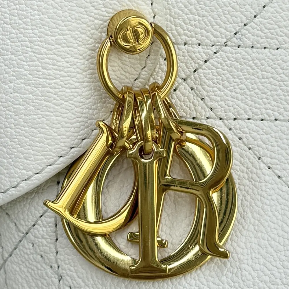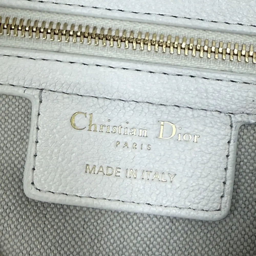 - The supple construction is enhanced by gold-finish metal D.I.O.R. charms and finely crafted leather accents for added structure,
