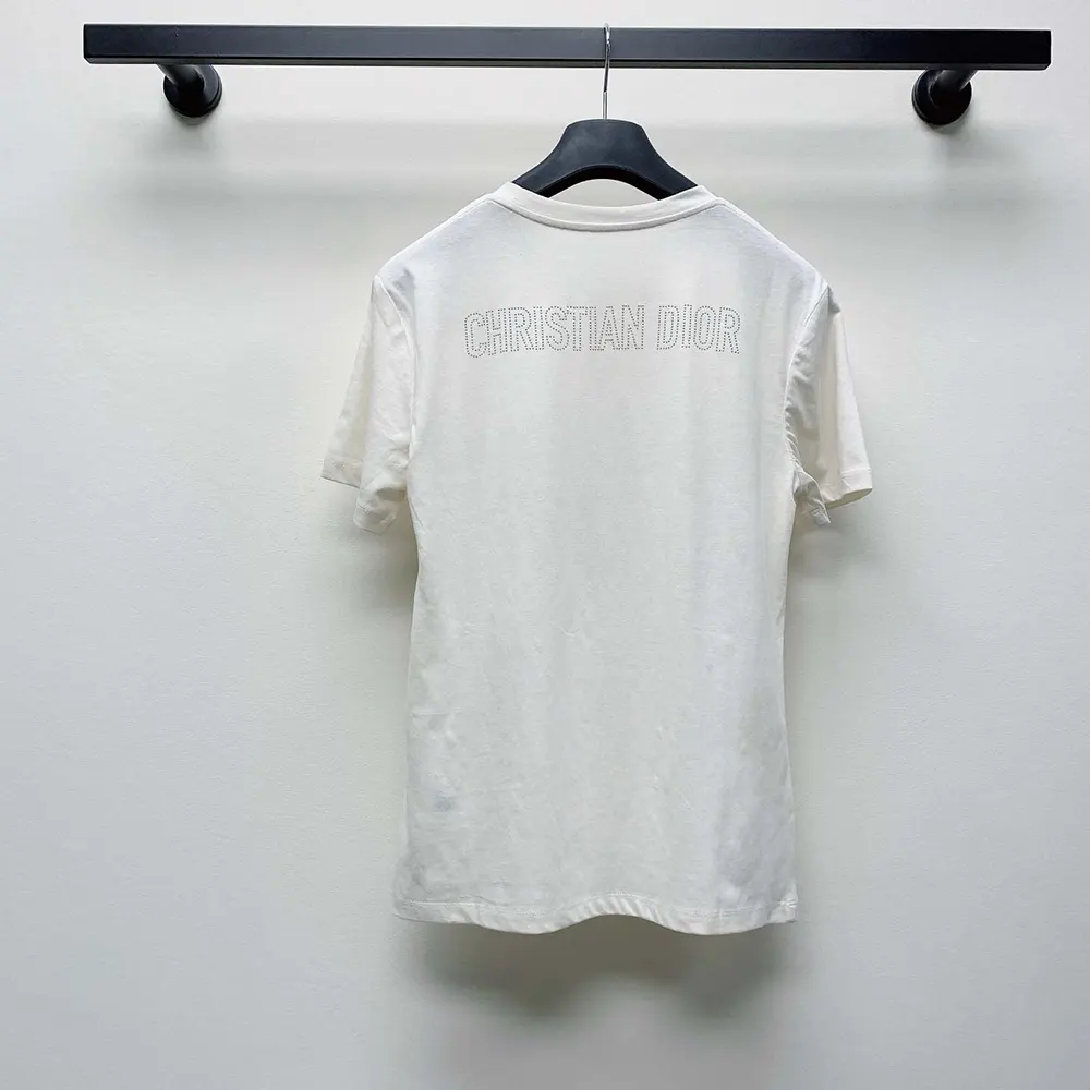 Dior Women T-Shirt White Cotton and Linen Jersey with Black Dior Cabinet de Curiosités Motif