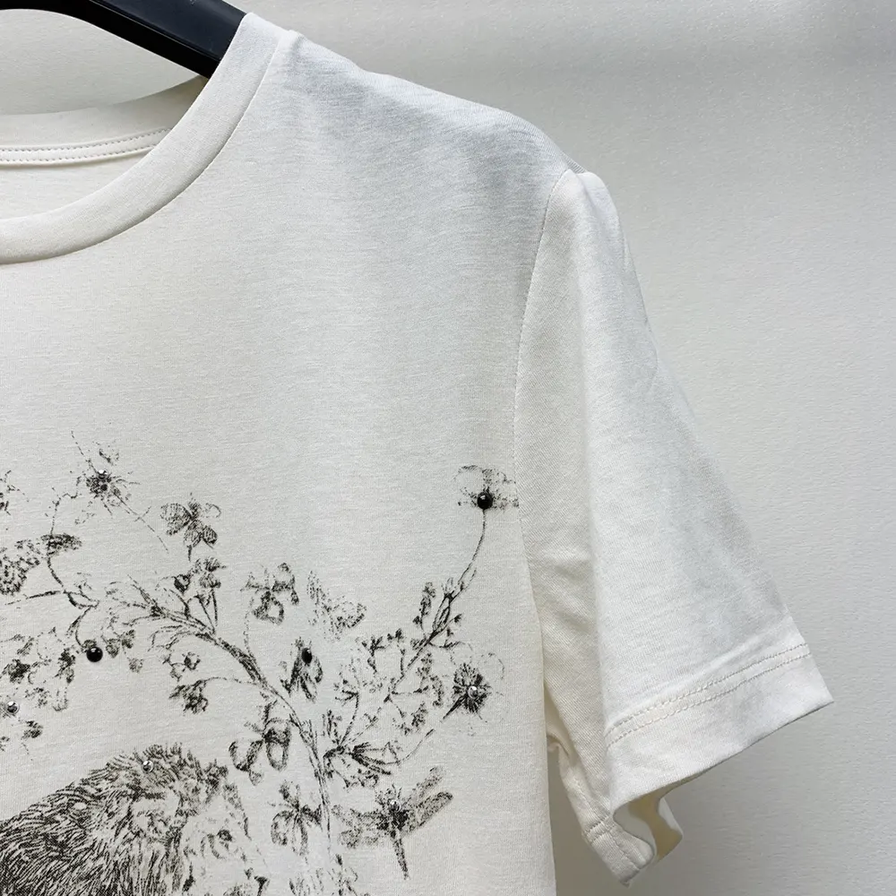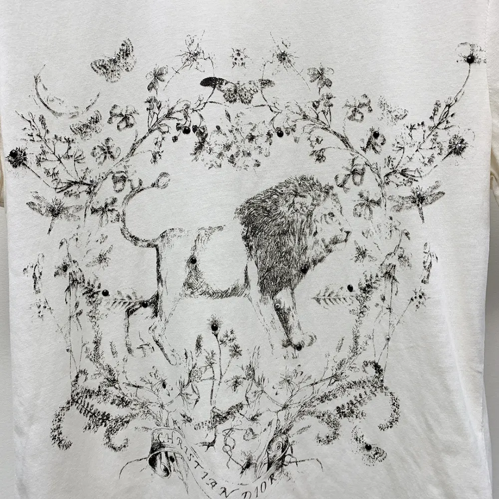 Specification: Dior Women T-Shirt White Cotton and Linen Jersey with Black Dior Cabinet de Curiosités Motif