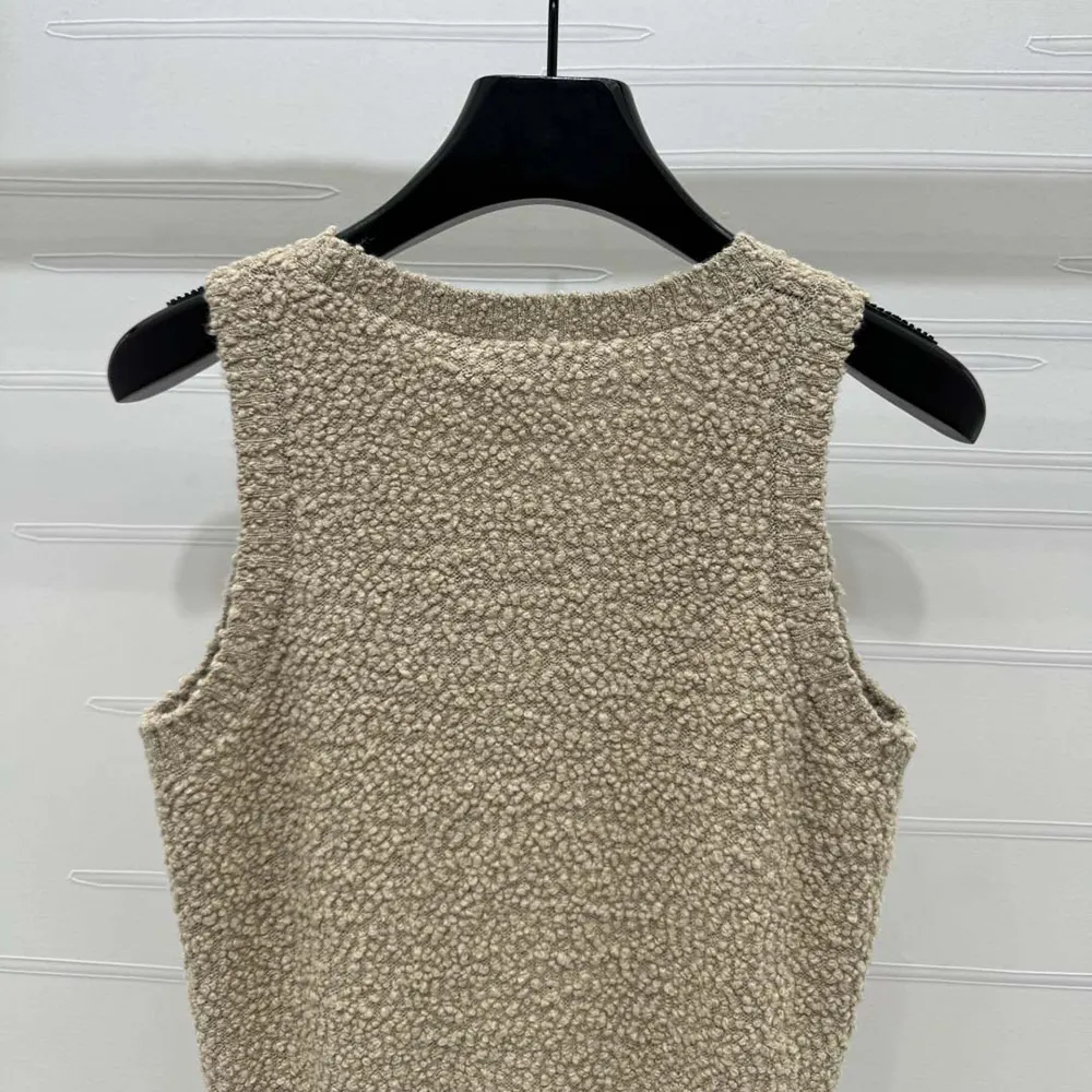 - it is composed of a round neck tank top and cardigan showcasing Dior Tribales buttons with a CD resin pearl,
