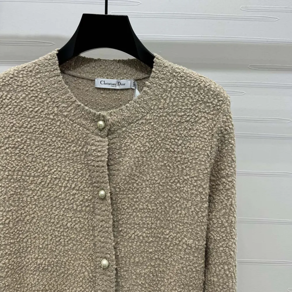 Specification: Dior Women Twinset Beige Cotton- and Wool-Blend Bouclé Knit