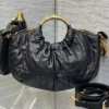 - while the structured top handles in antique gold-finish metal are completed by an adjustable and removable leather strap,