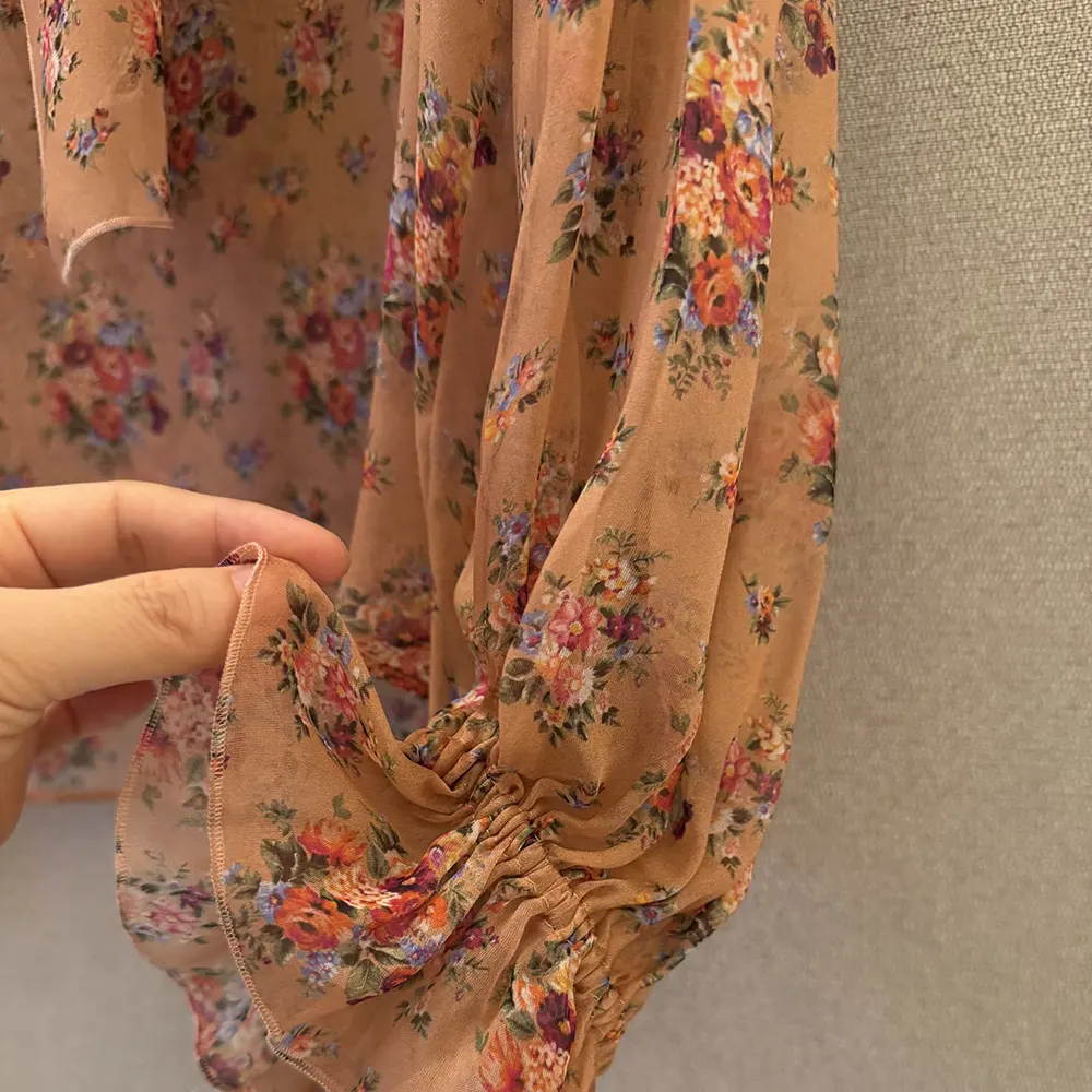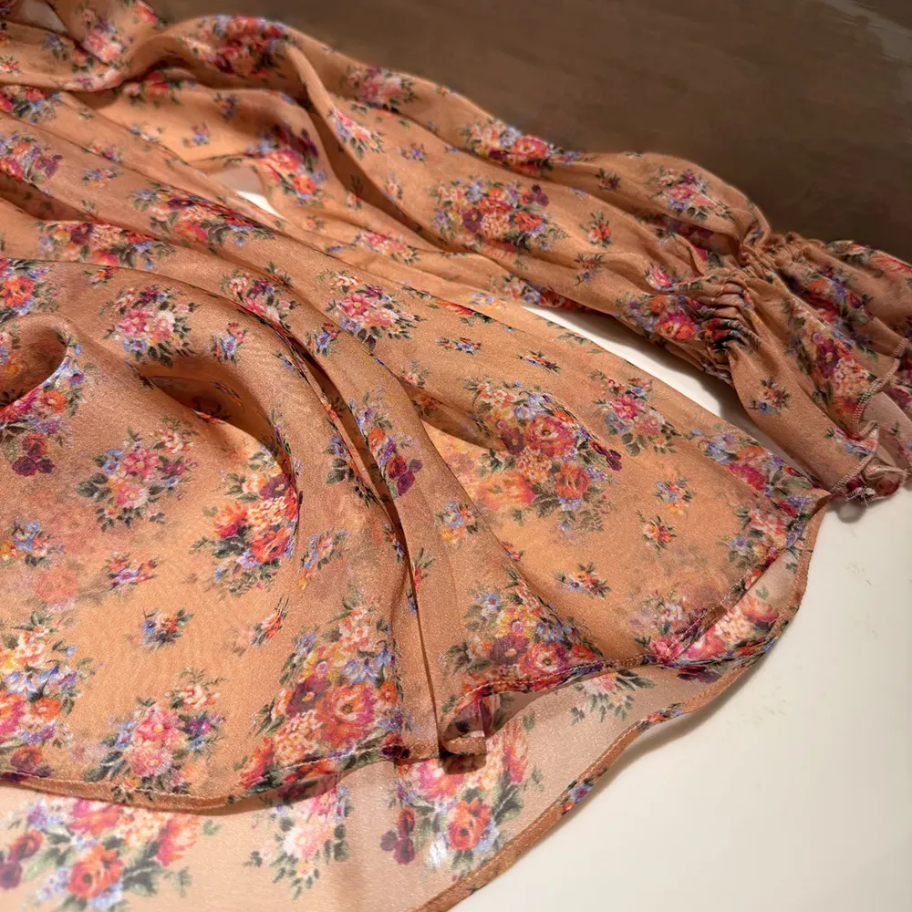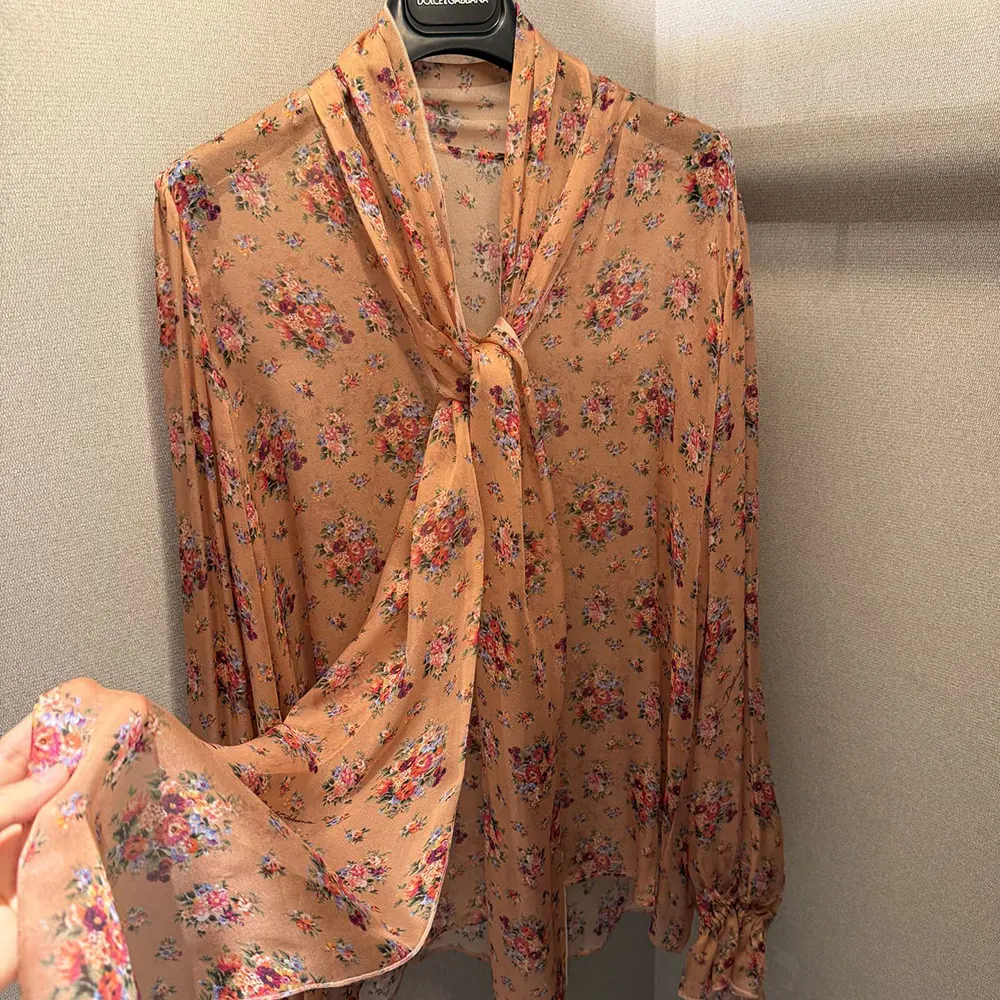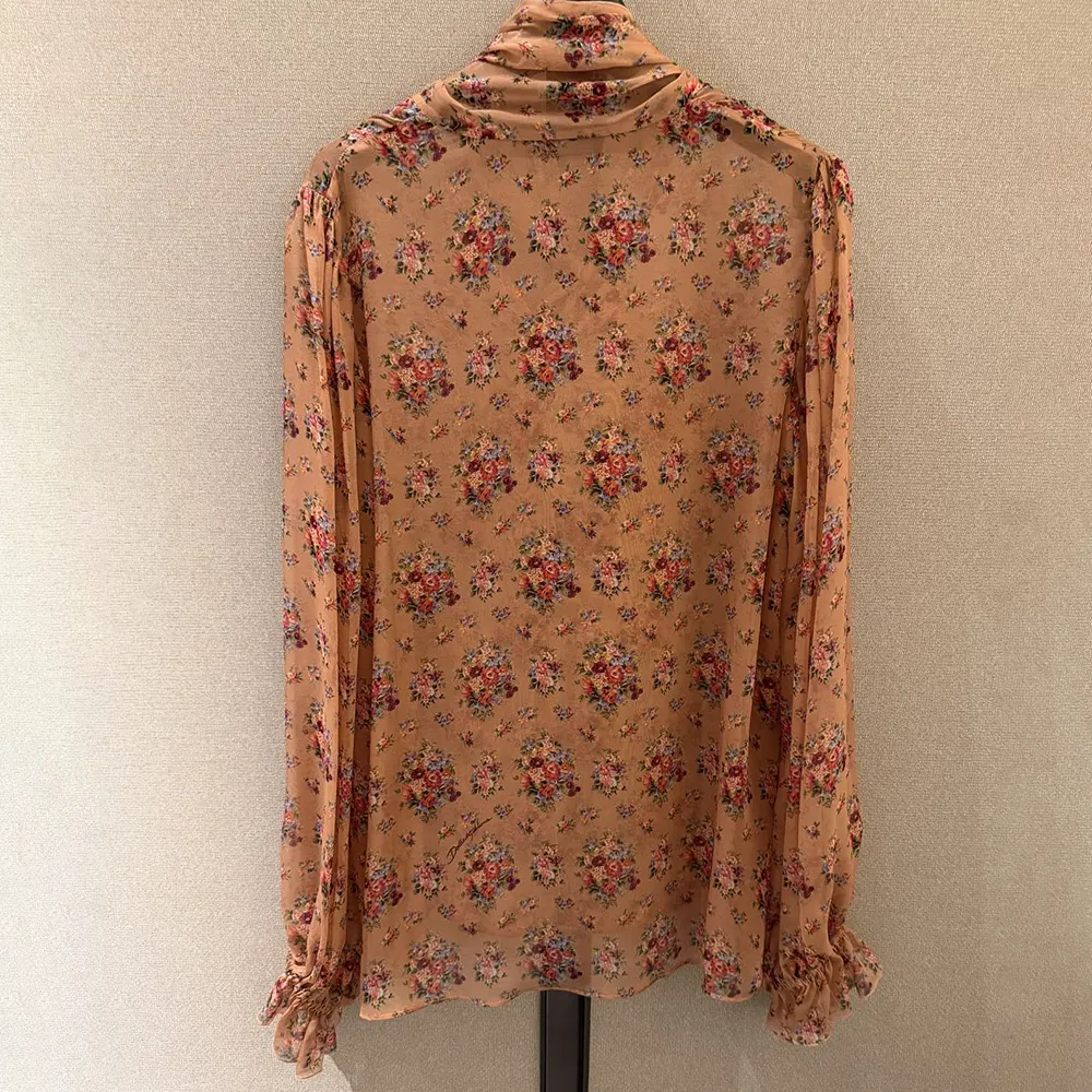 - Crafted from silk chiffon with a delicate floral print, this slip blouse is a versatile and refined piece that adds a touch of elegance to any wardrobe.