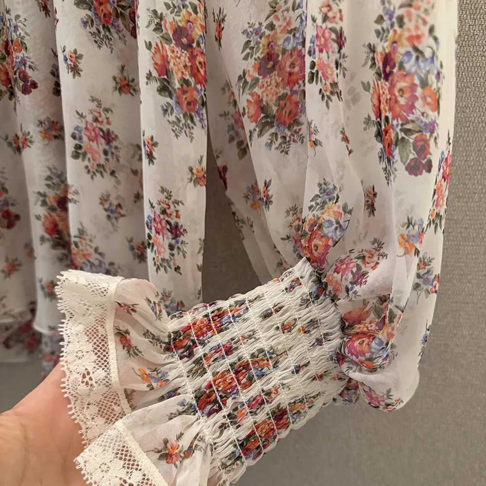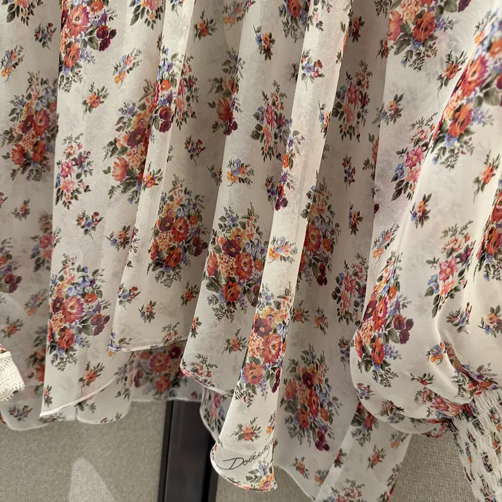 Dolce Gabbana D&G Women Small Flower Bouquets-Print Chiffon Top