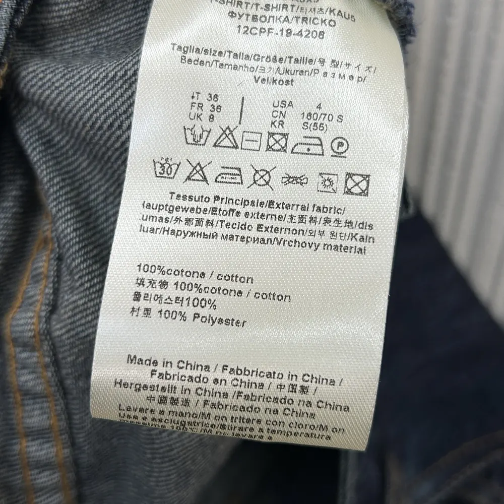 • Made of dark blue denim. Finished with FF motif quilted on the small, right pocket and back pockets.