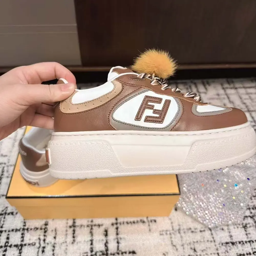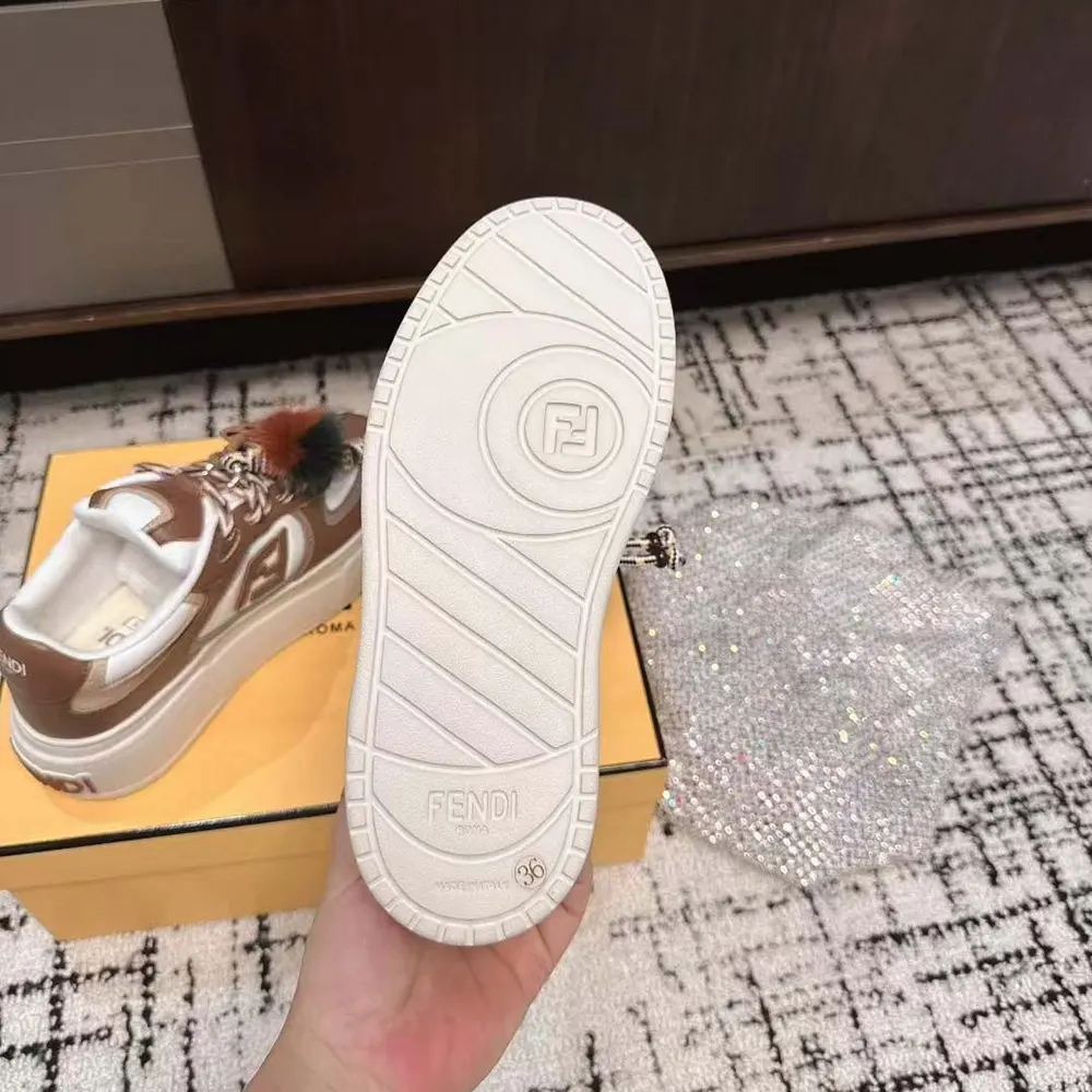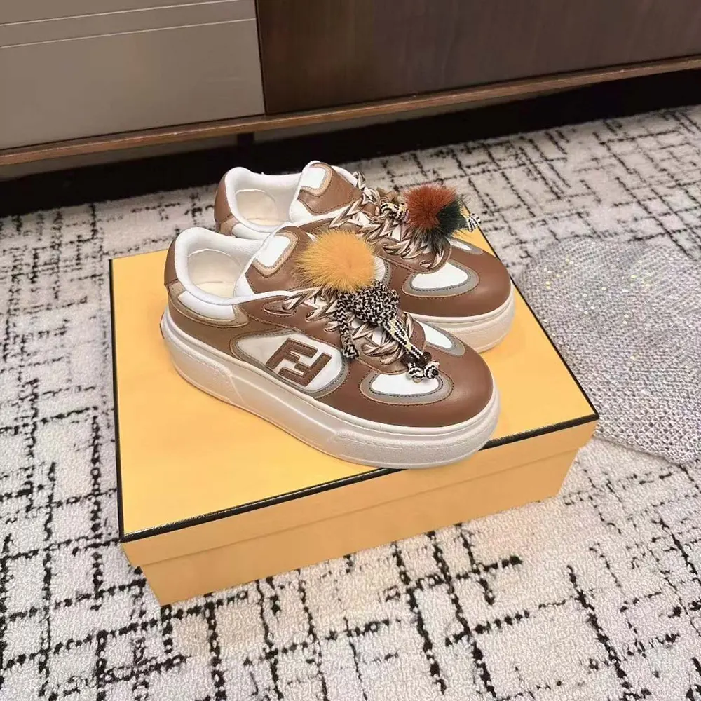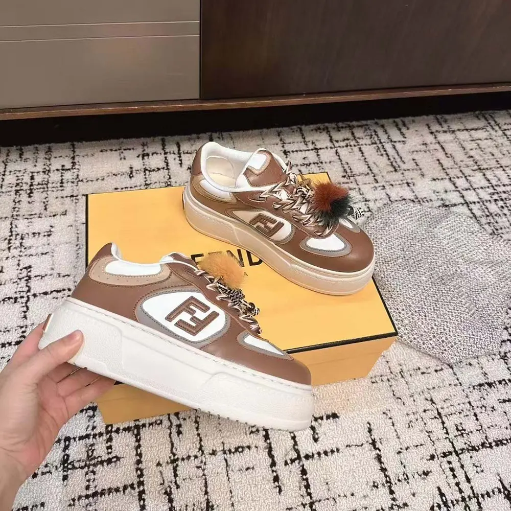 Fendi Women Match Brown Leather Platform Low-Tops With Charm