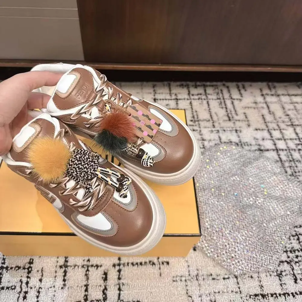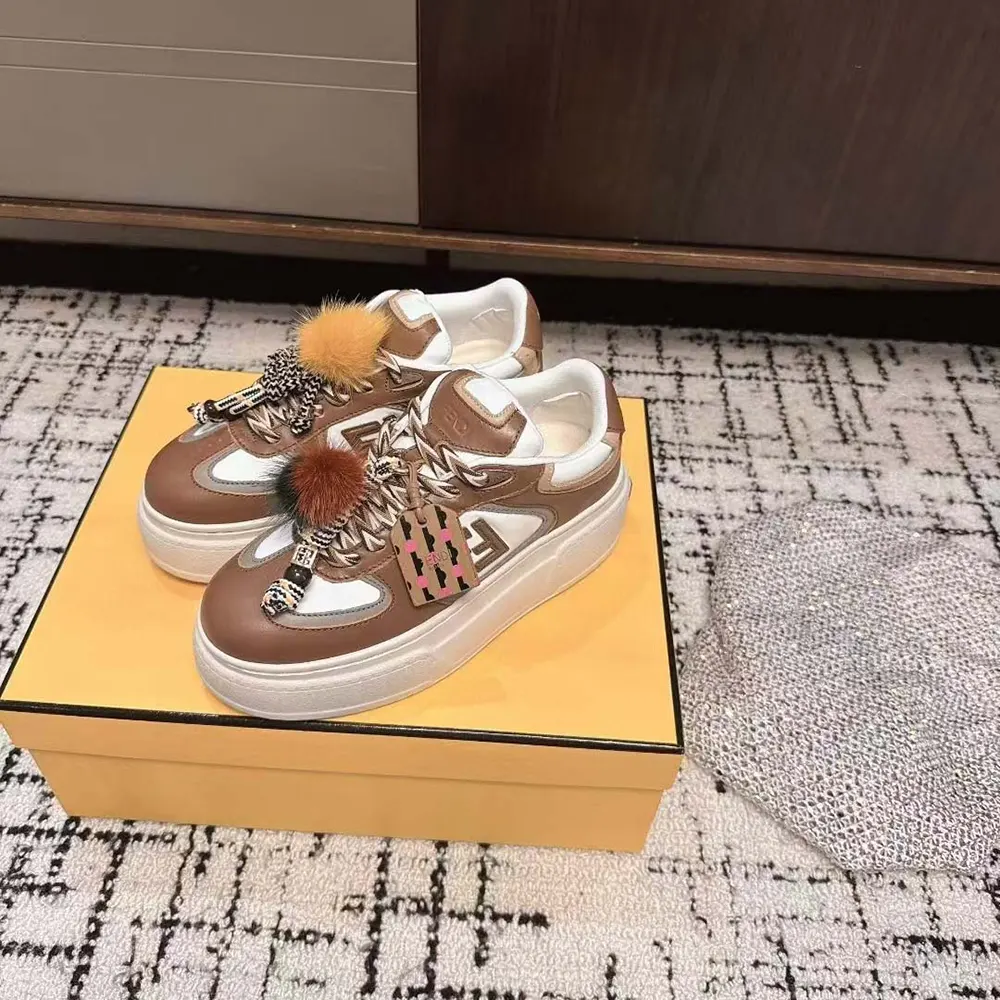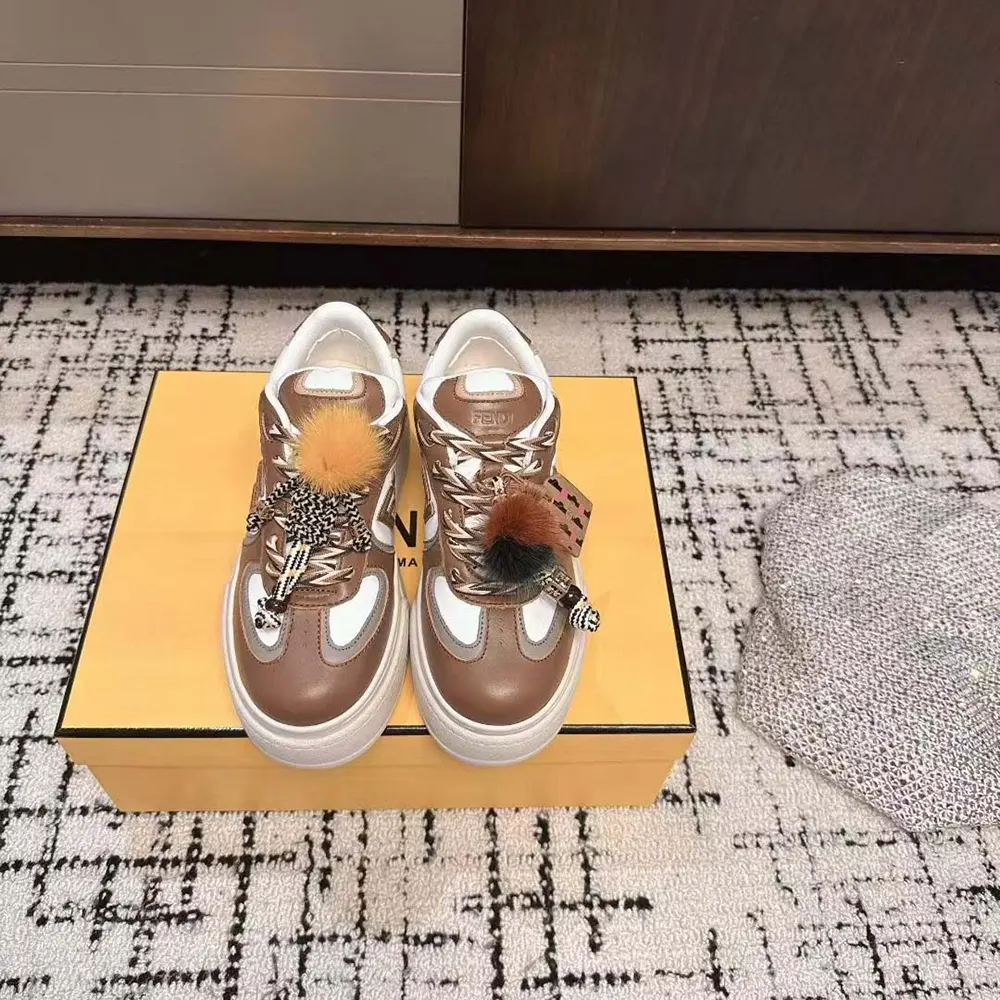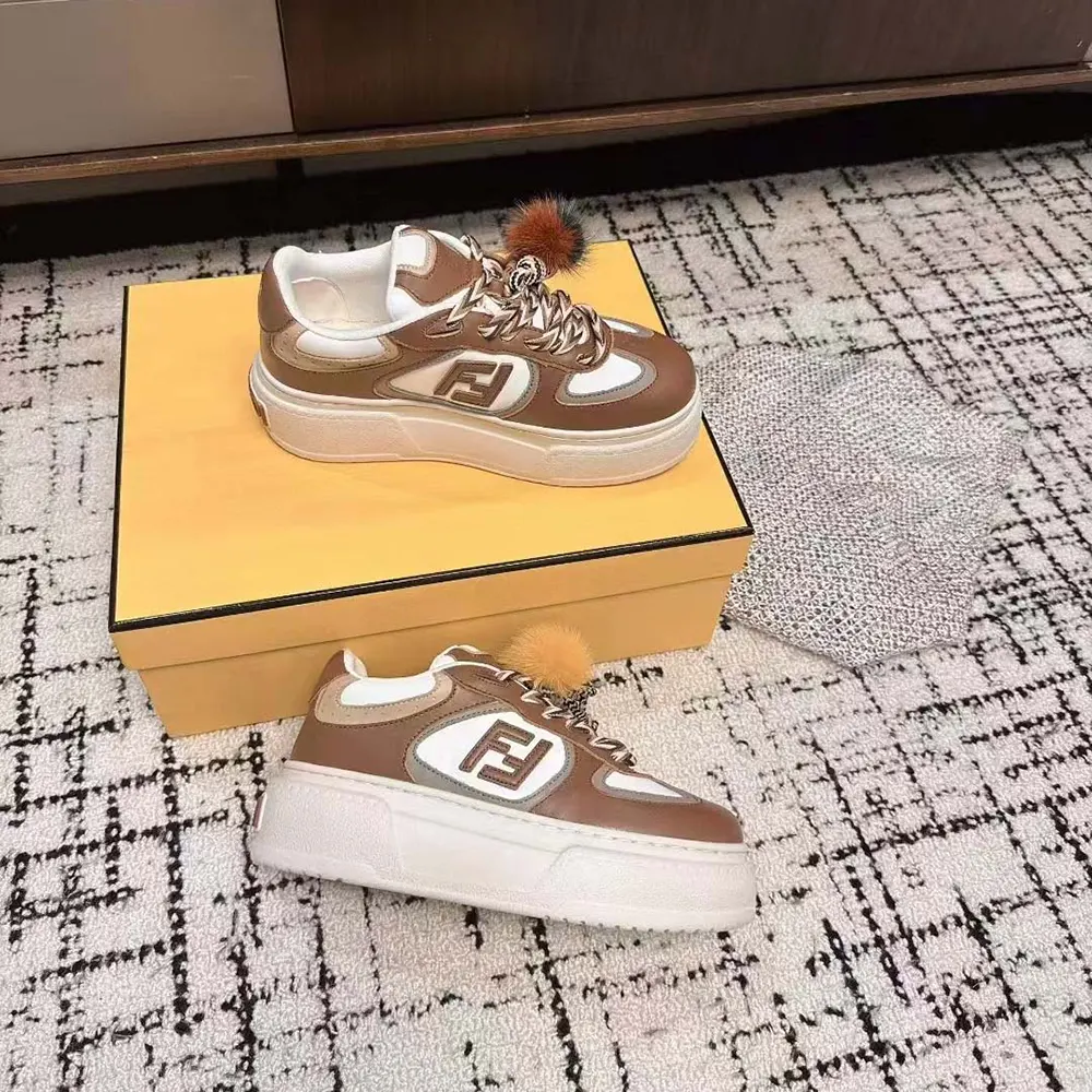 Fendi Women Match Brown Leather Platform Low-Tops With Charm