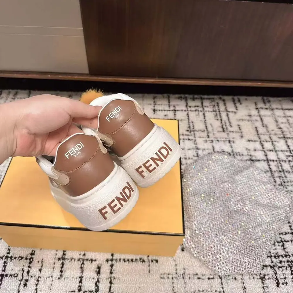 - Fendi Match lace-up sneakers. Made of brown leather with beige and white details.