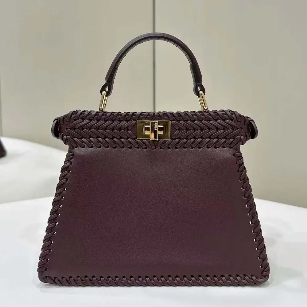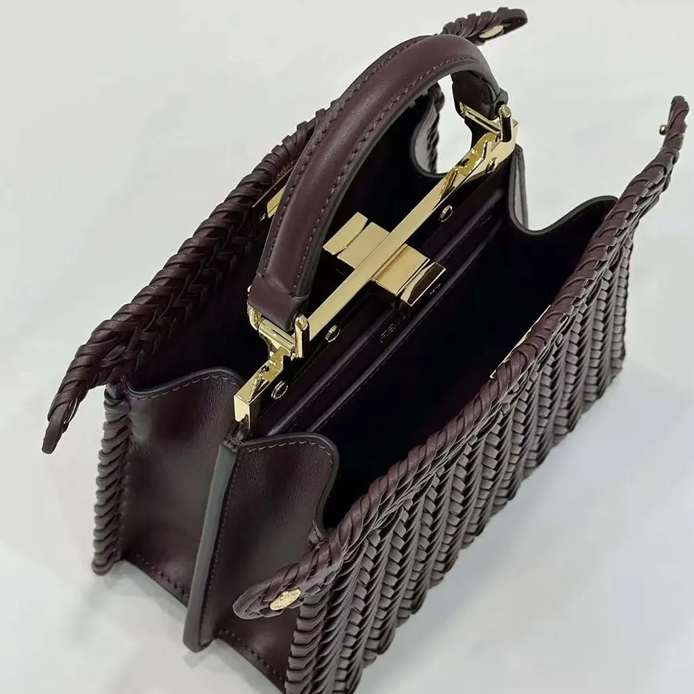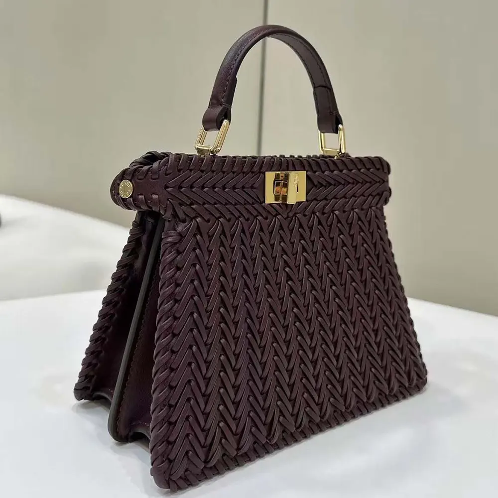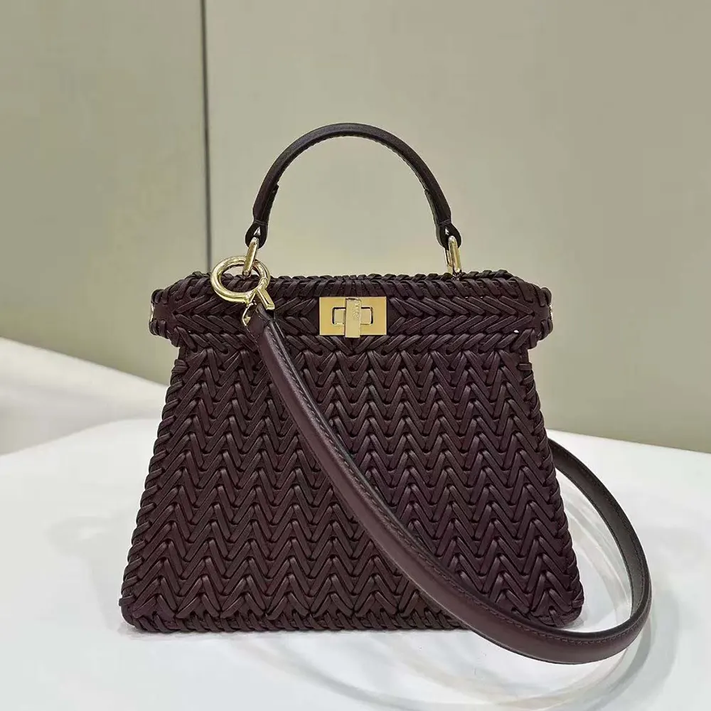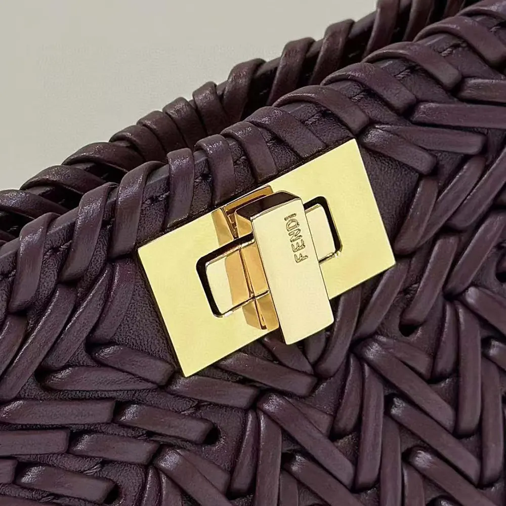 - Iconic small Peekaboo bag made of finely braided beige leather and embellished with the classic twist lock on both sides.