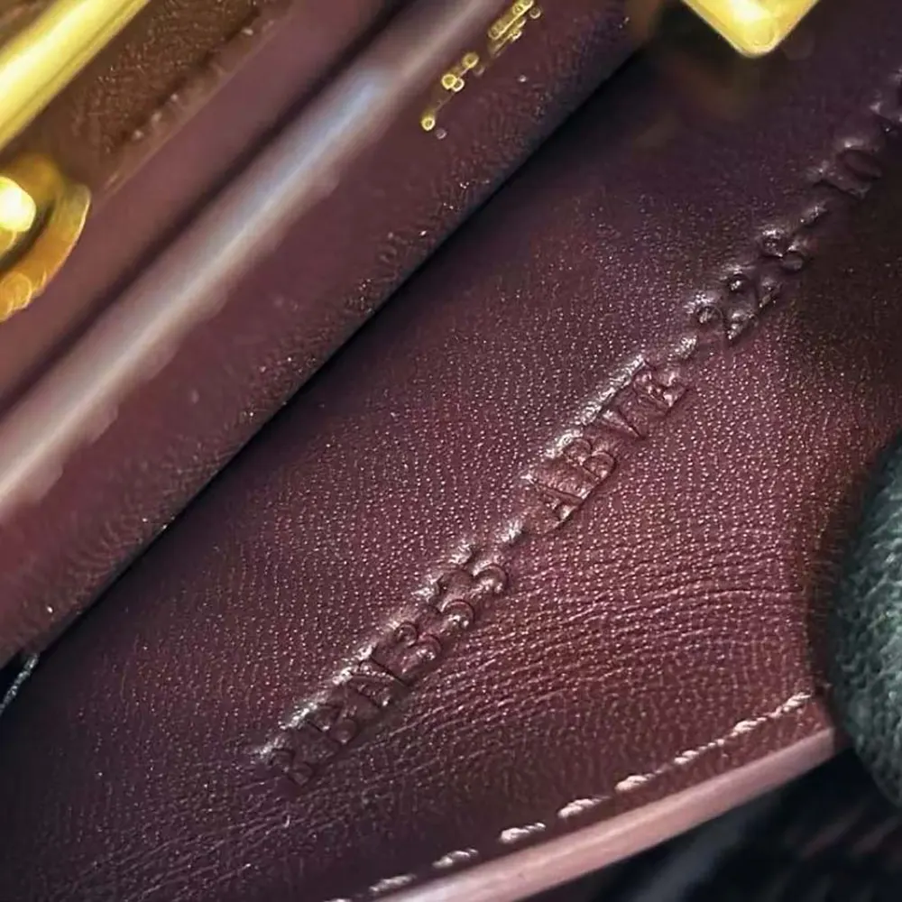 - Featuring a soft beige nappa leather lining with two compartments separated by a stiff partition,
