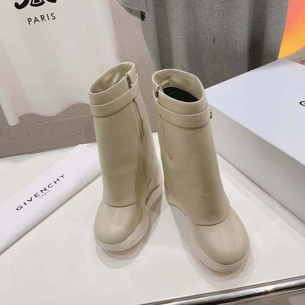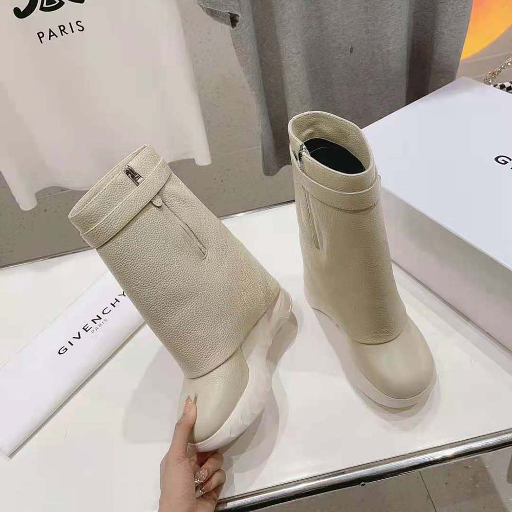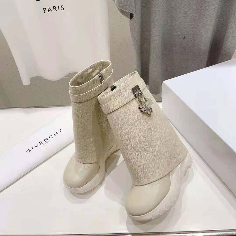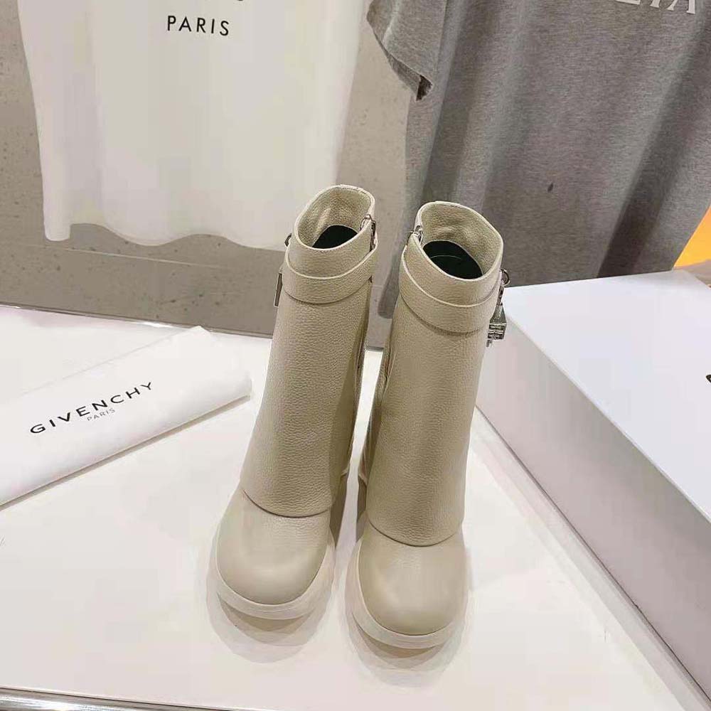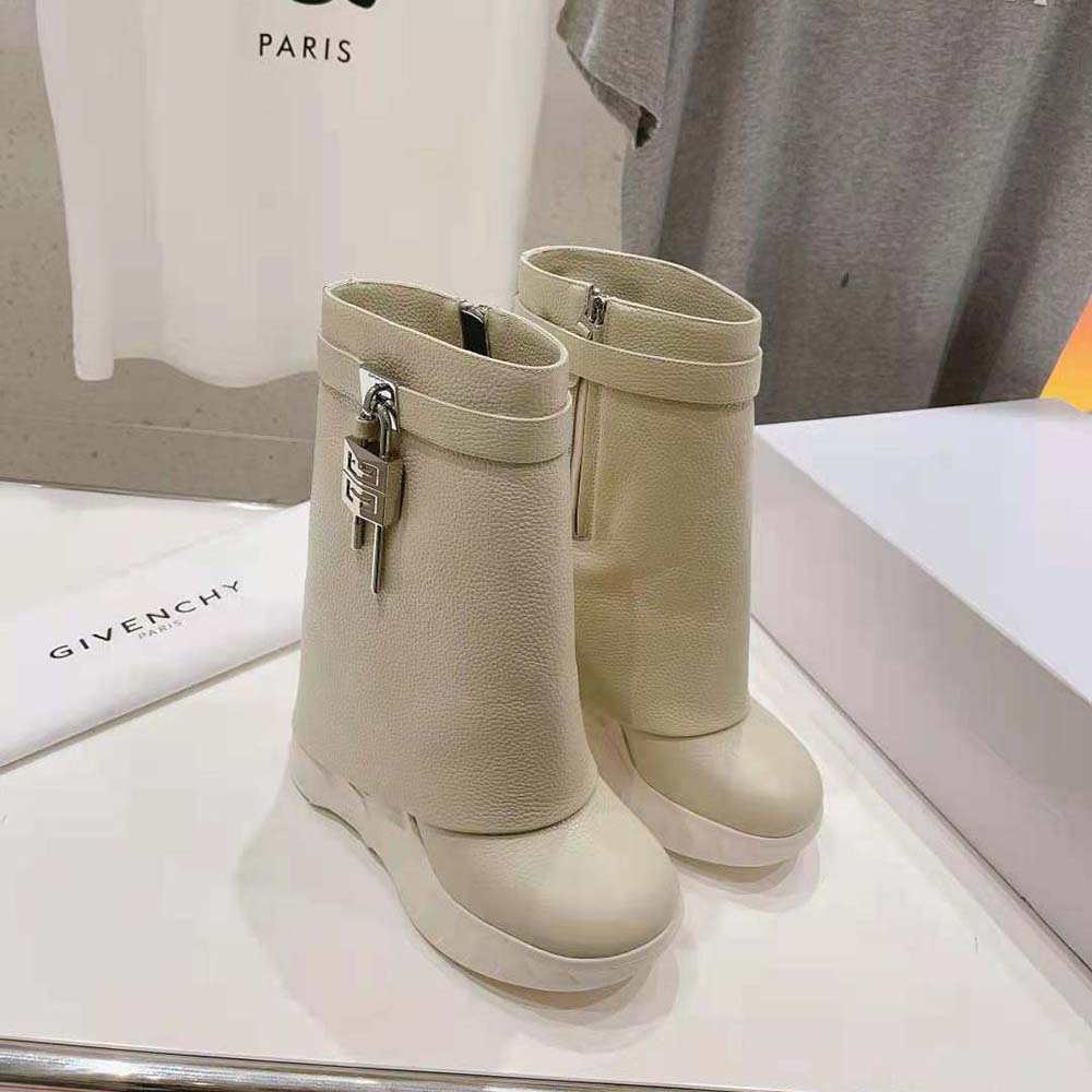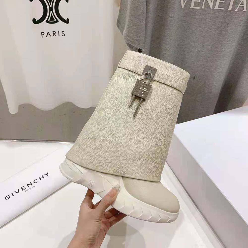 Specification: Givenchy Women Shark Lock Biker Ankle Boots in Grained Leather-Beige