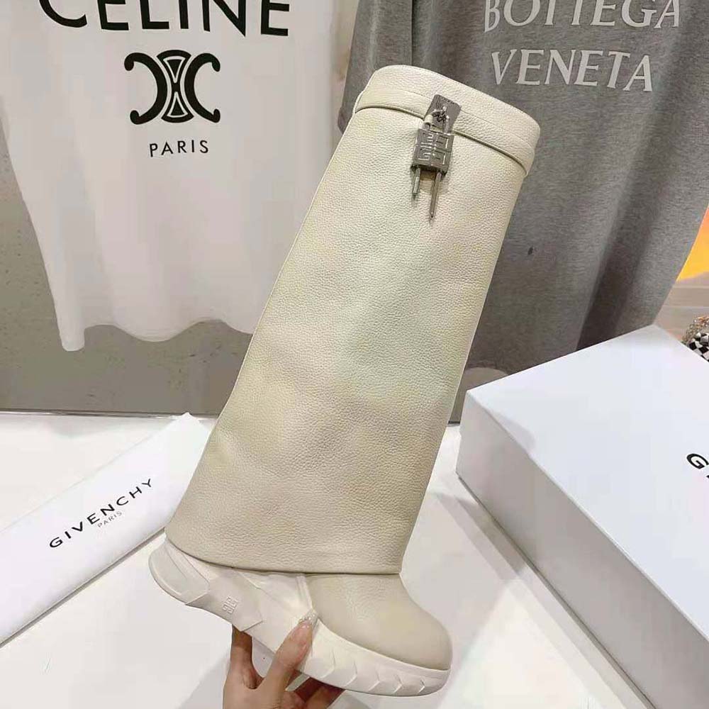 Specification: Givenchy Women Shark Lock Biker Boots in Grained Leather-Beige