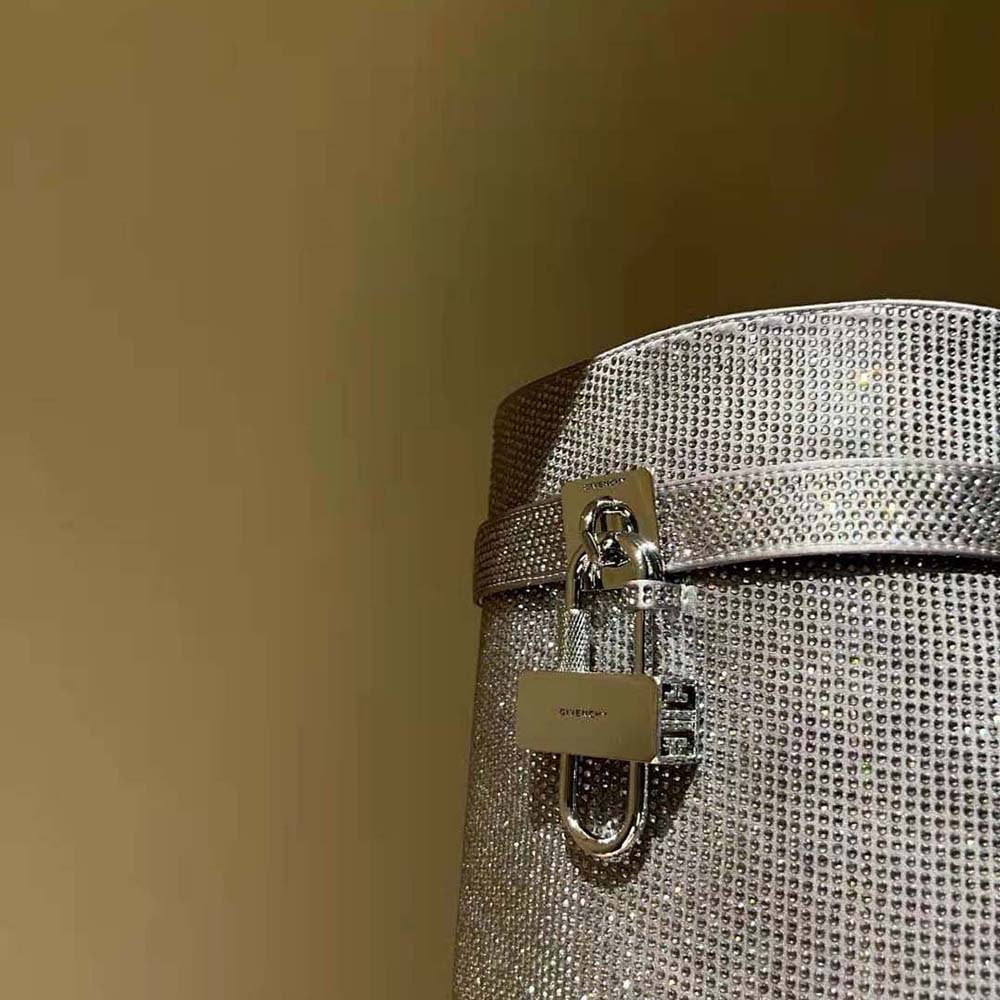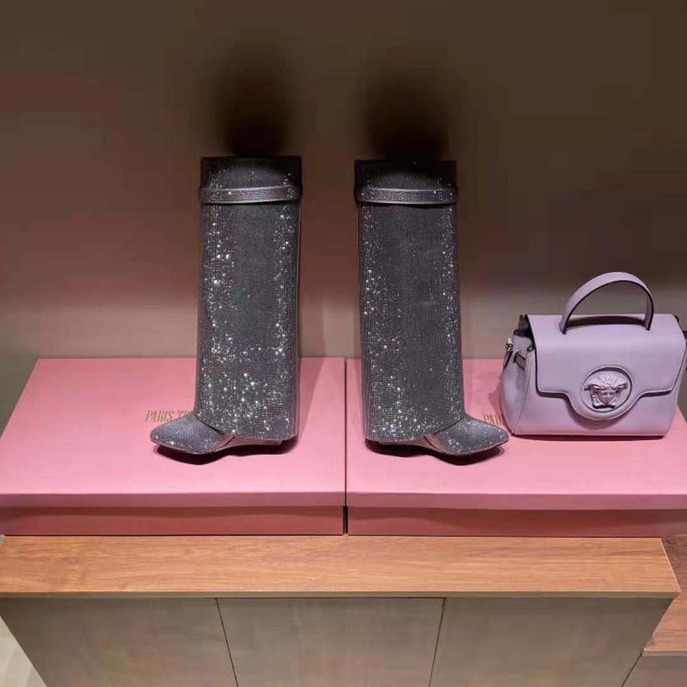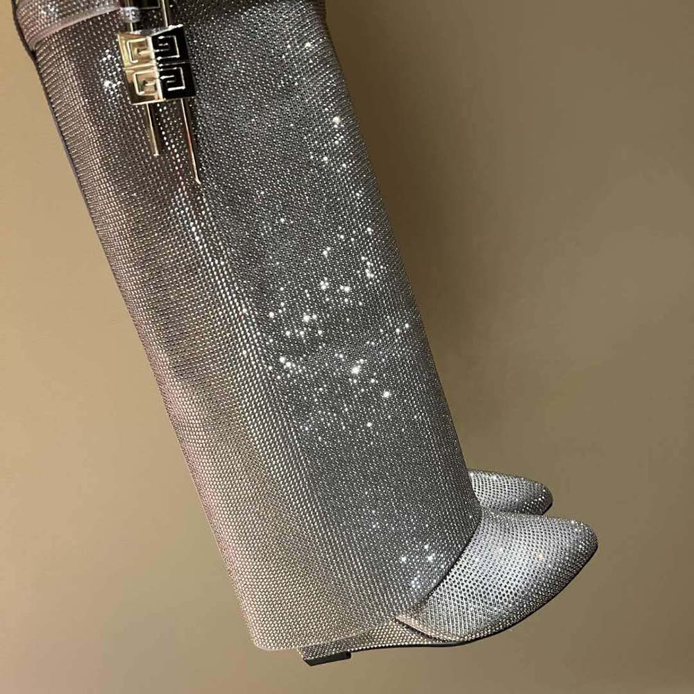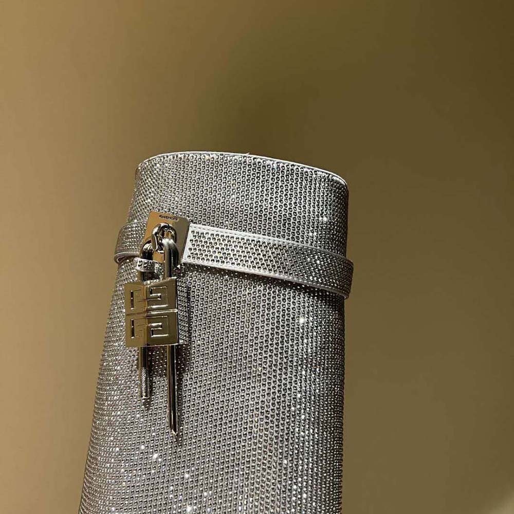 Specification: Givenchy Women Shark Lock Boots in Satin with Strass-Silver