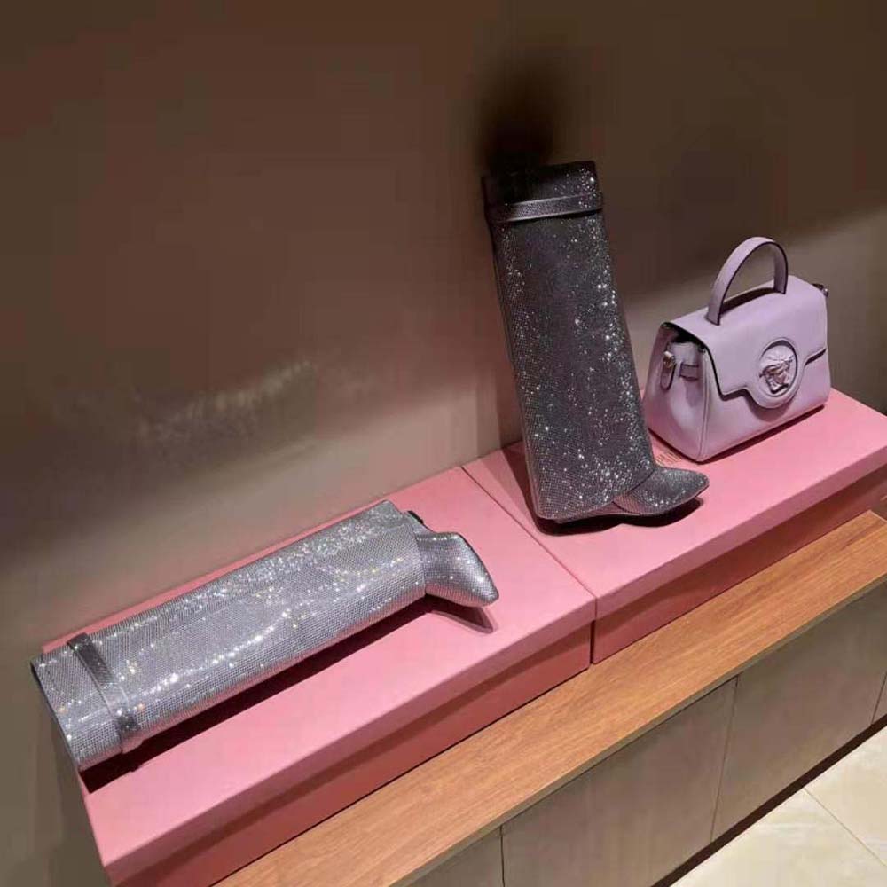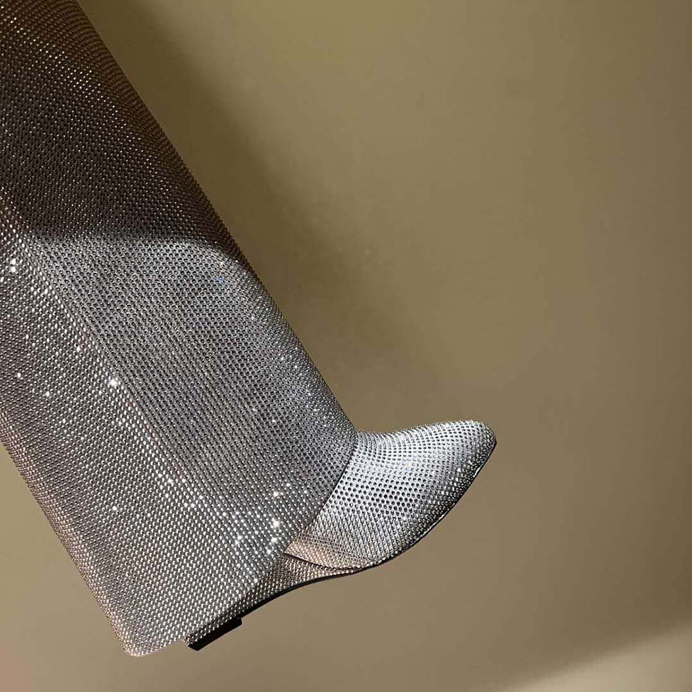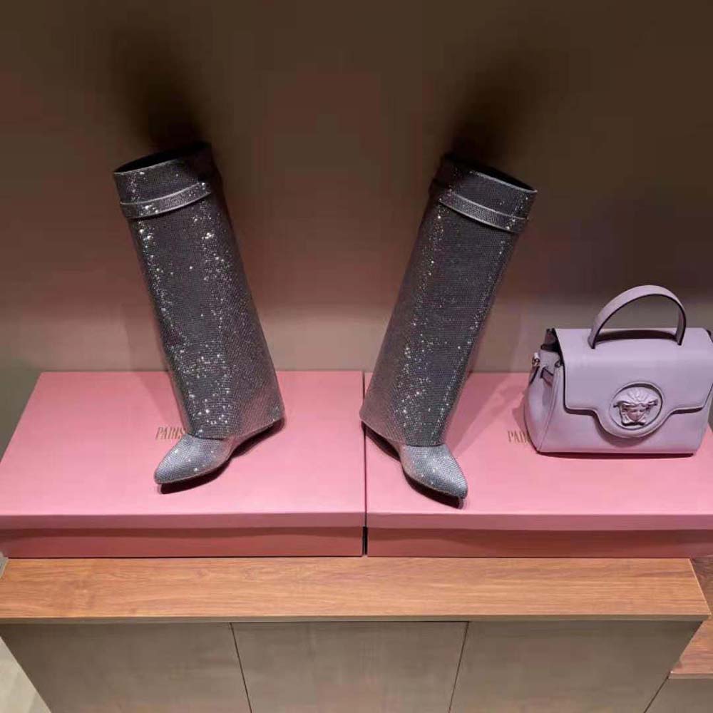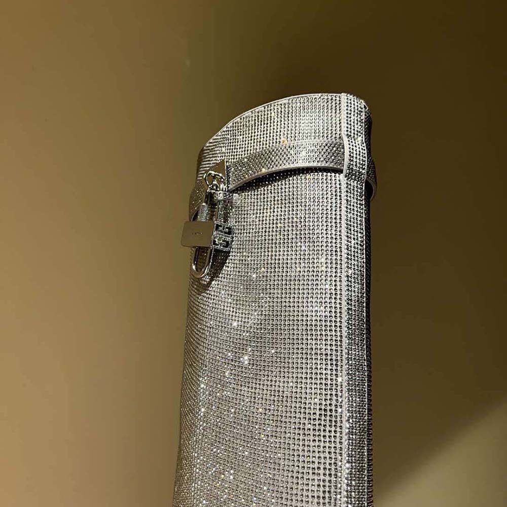 Specification: Givenchy Women Shark Lock Boots in Satin with Strass-Silver