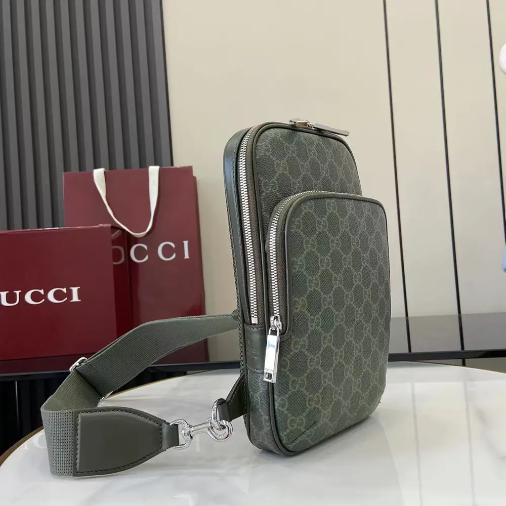 Gucci Men GG Monogram Small Slingbag Forest Green GG Fabric 822073
