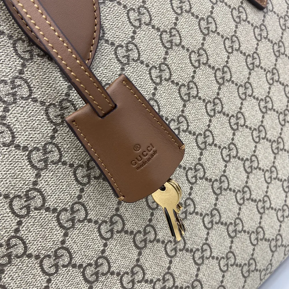 • This briefcase is crafted from the new beige and dark brown GG Monogram coated fabric
