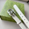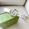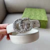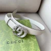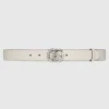 Gucci Unisex GG Marmont Thin Belt Crystals White Leather Double G Buckle 3 CM Width