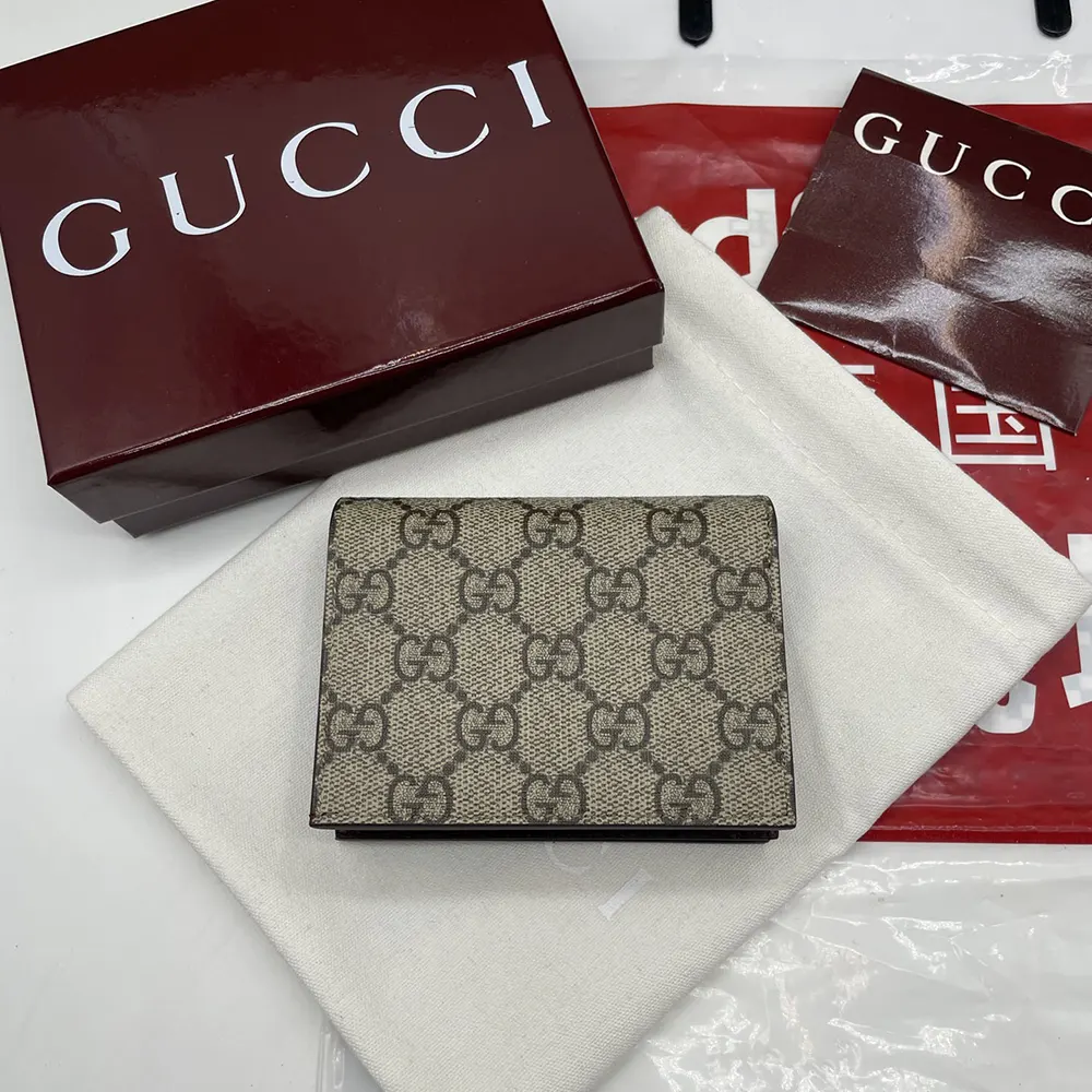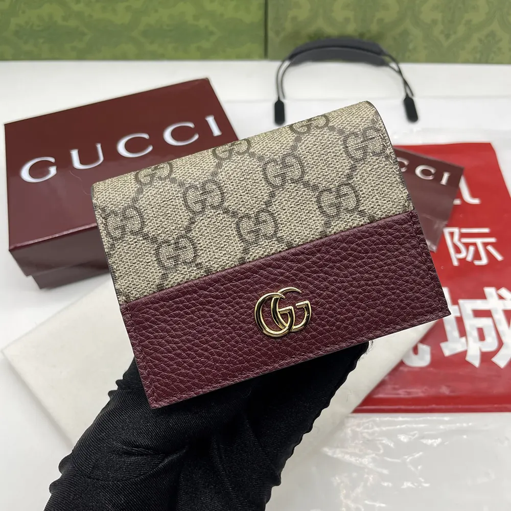Gucci Women Bi-Color Gg Marmont Small Wallet Beige And Rosso Ancora Leather
