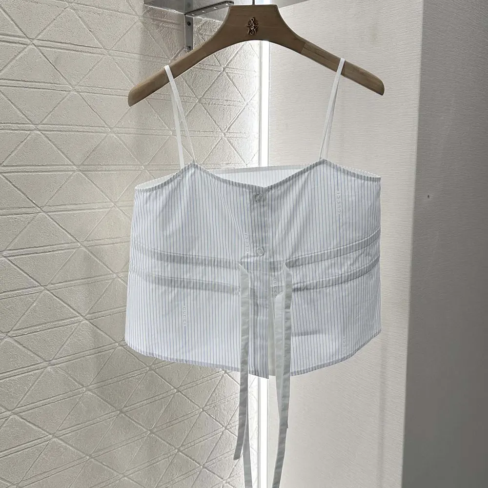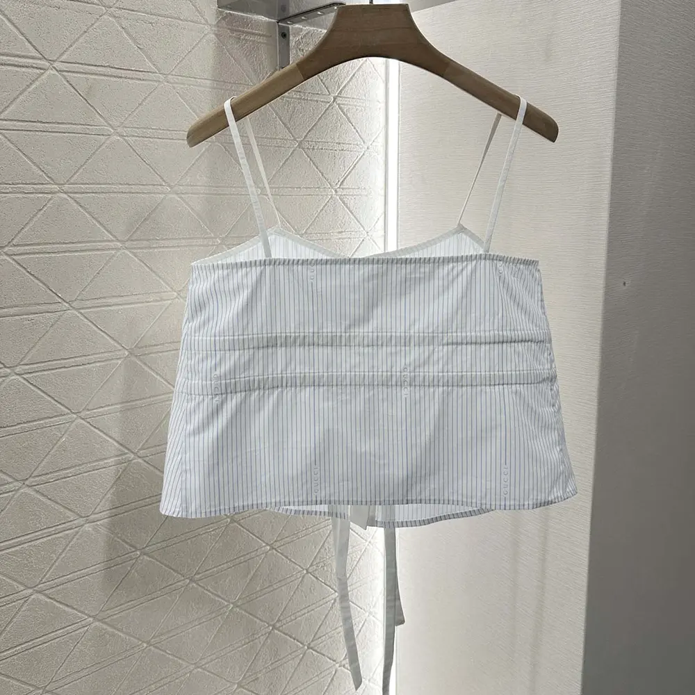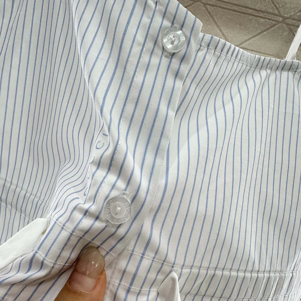 - This top with a sweetheart neckline is made from a striped Gucci cotton fil coupé and features romantic waist ties.